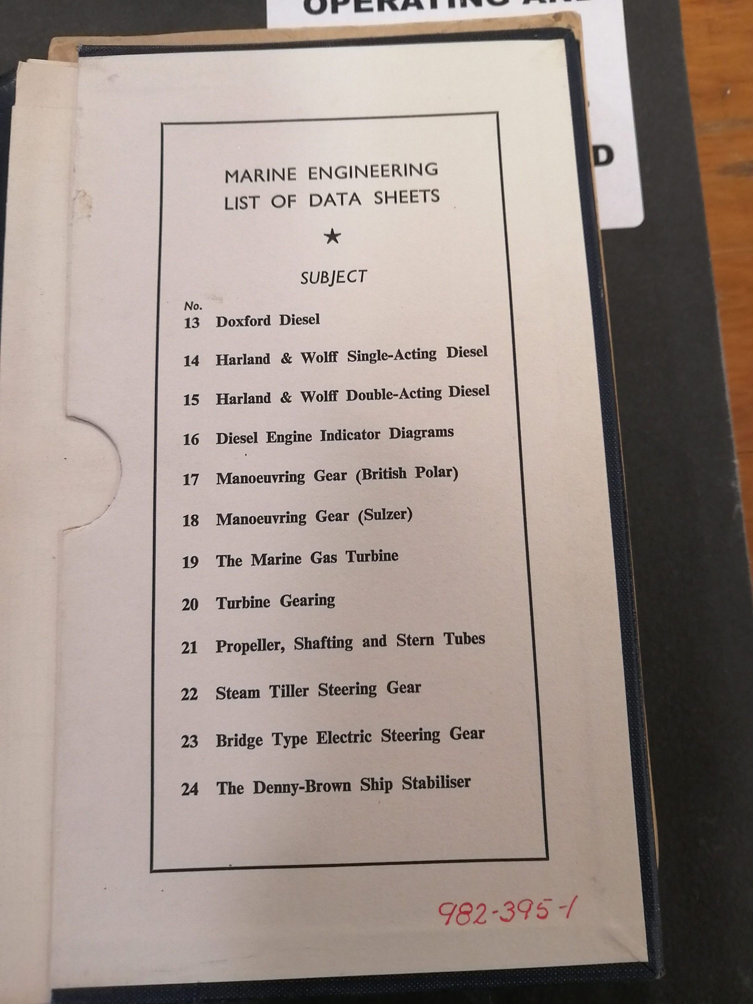 Marine engineering list of data sheets