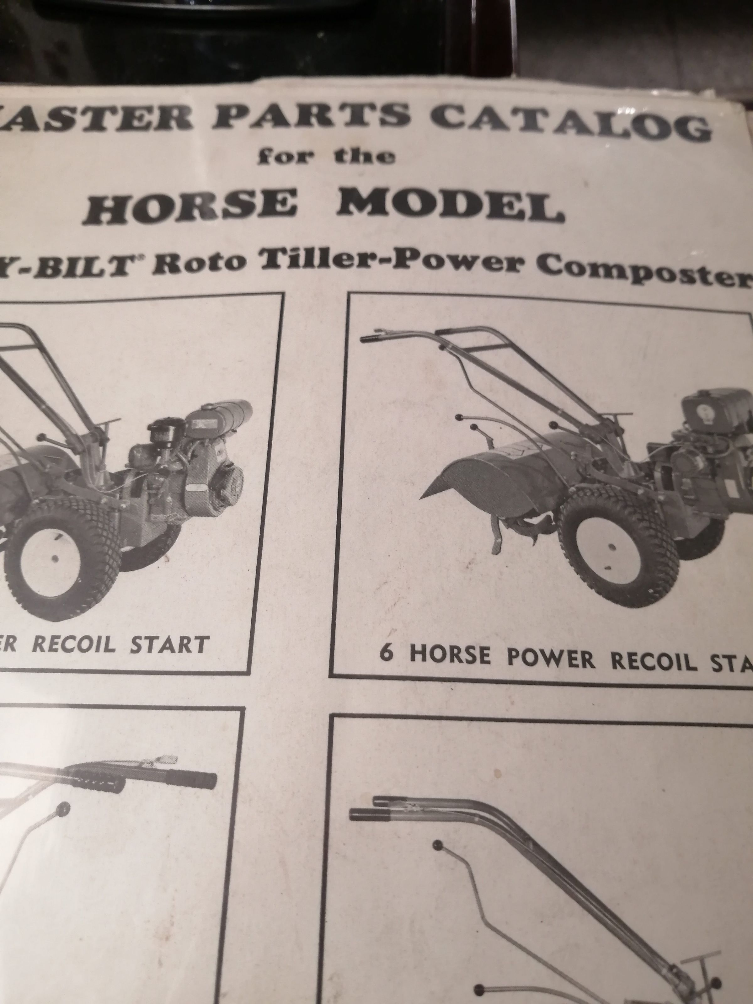 Master parts catalog for the horse model Troy built roto tiller-power composter