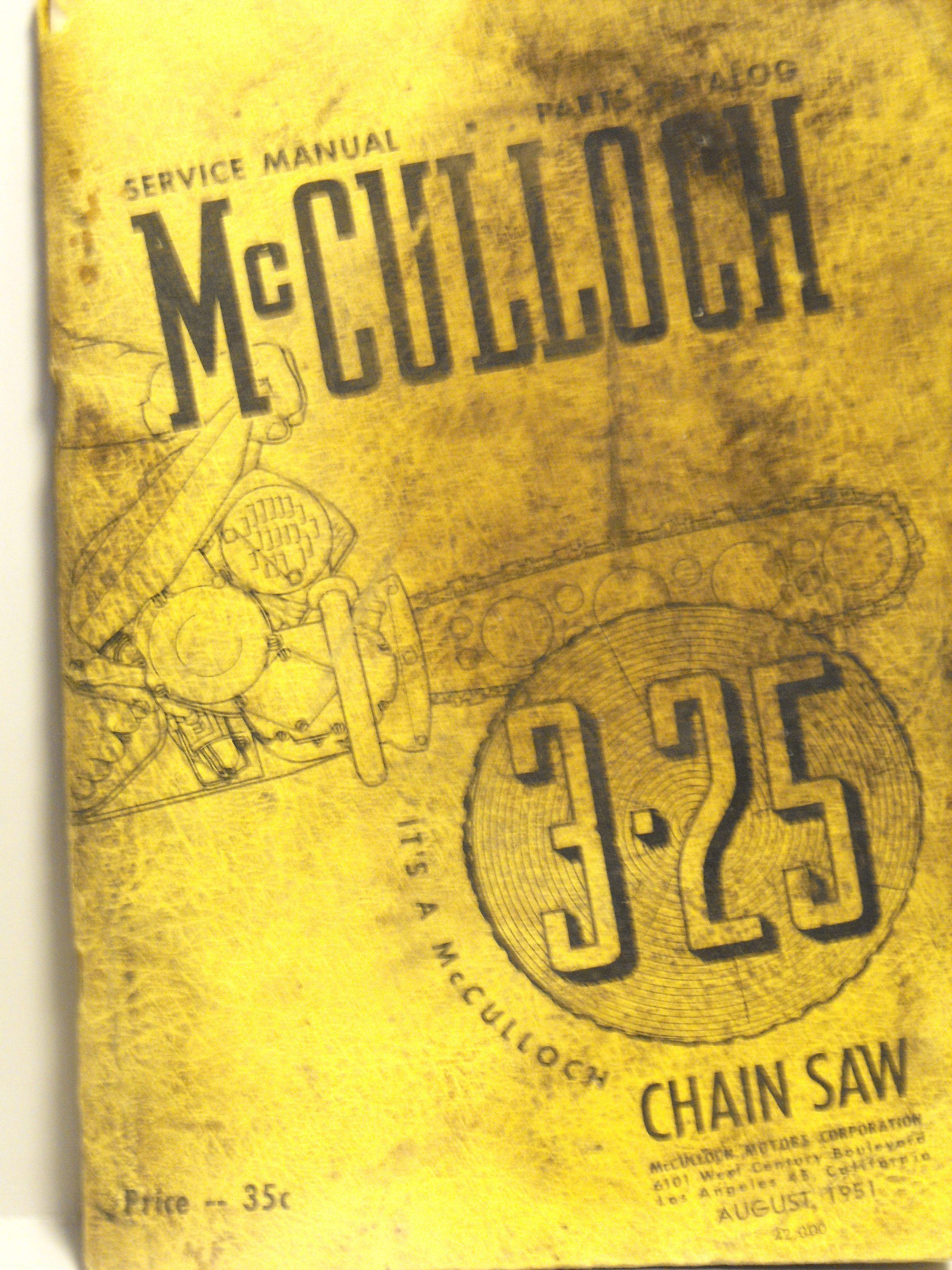 McCulloch service manual. Parts catalog