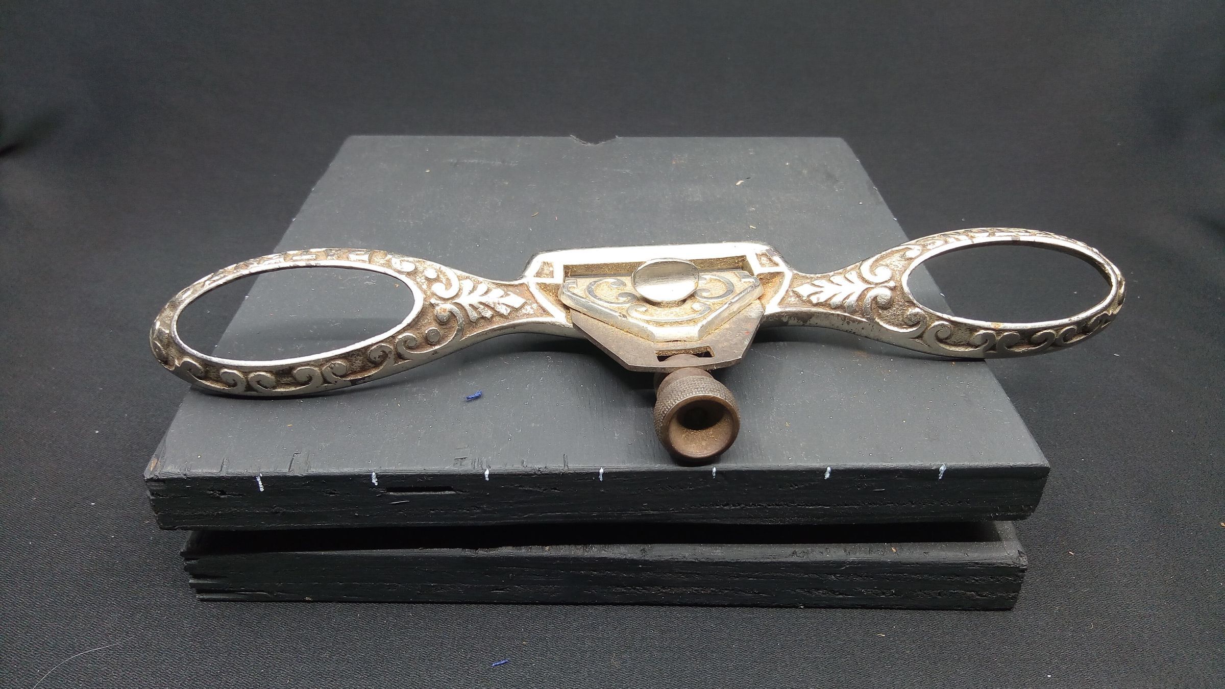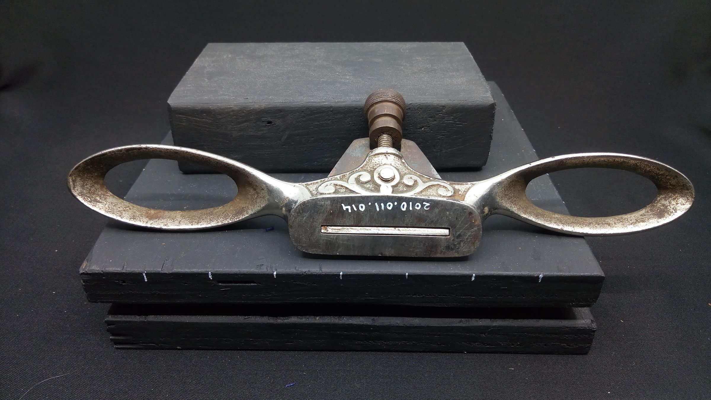 A highly ornamented cast iron spokeshave with screw blade adjustment.Use