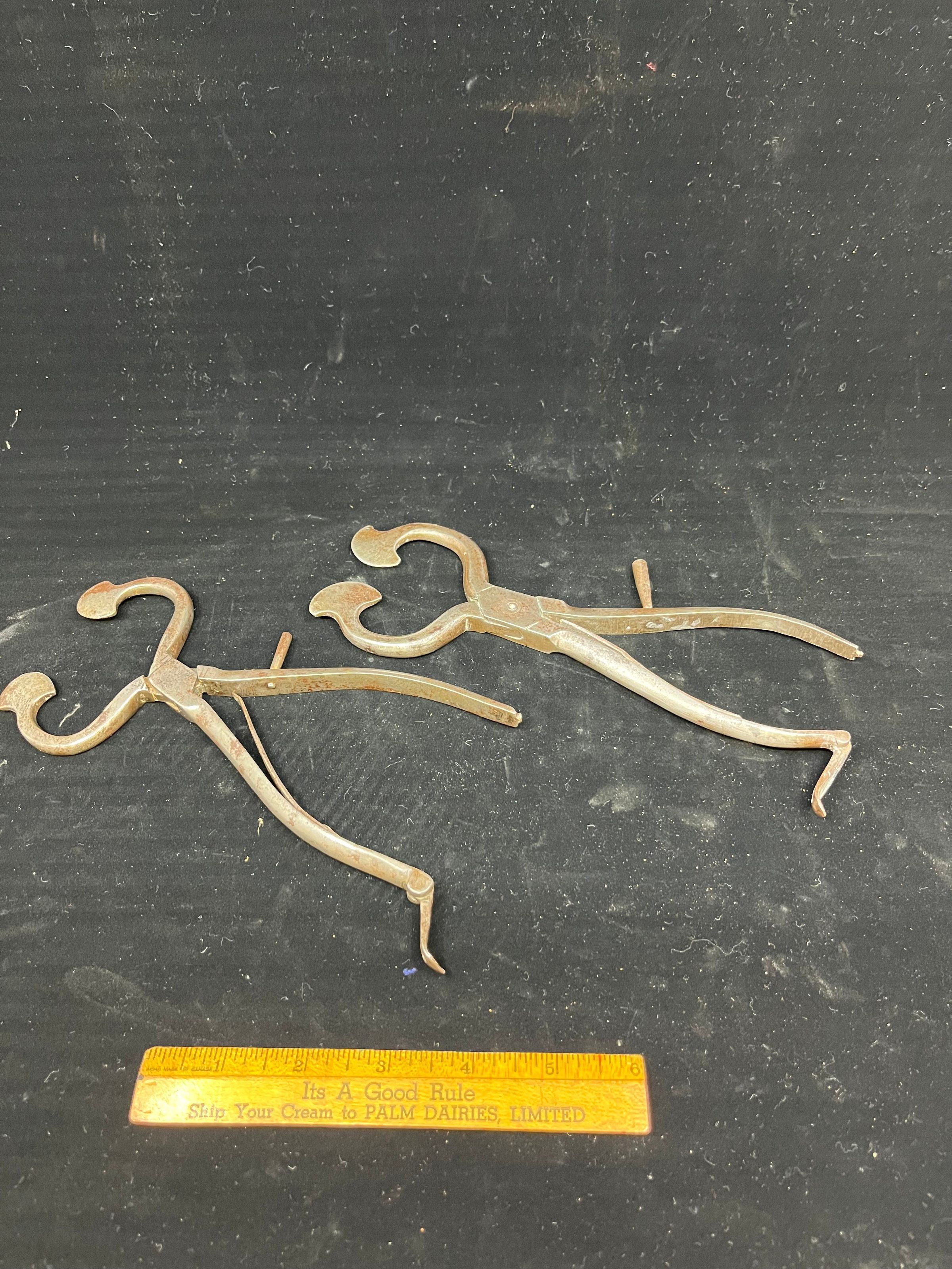 Spring loaded metal cutters used for breaking off sugar from sugar cones (Victorian)