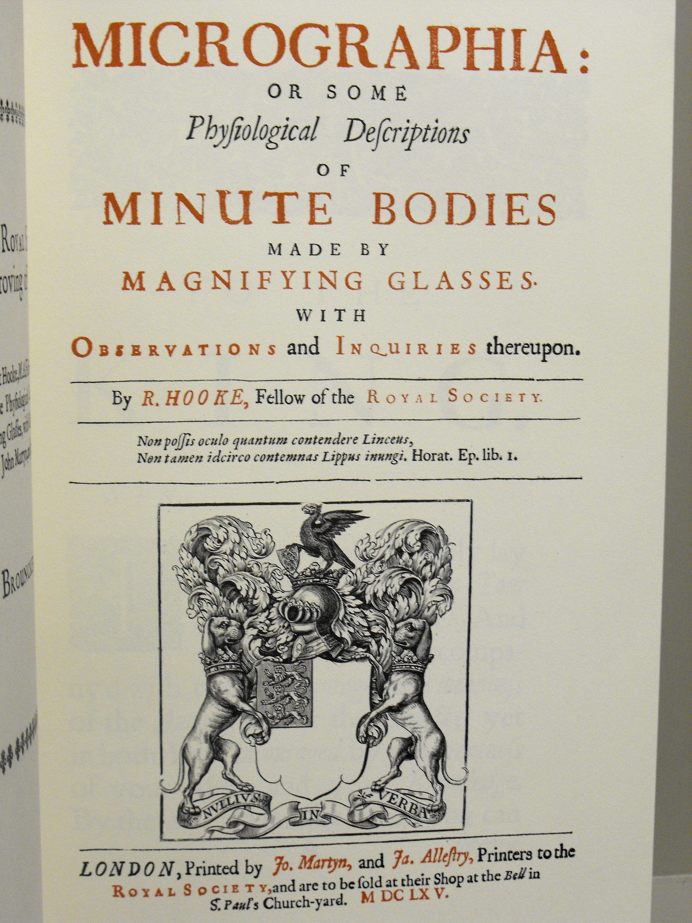 Micrographia: or some physiological descriptions of minute bodies made by magnifying glasses with observations and inquiries thereupon
