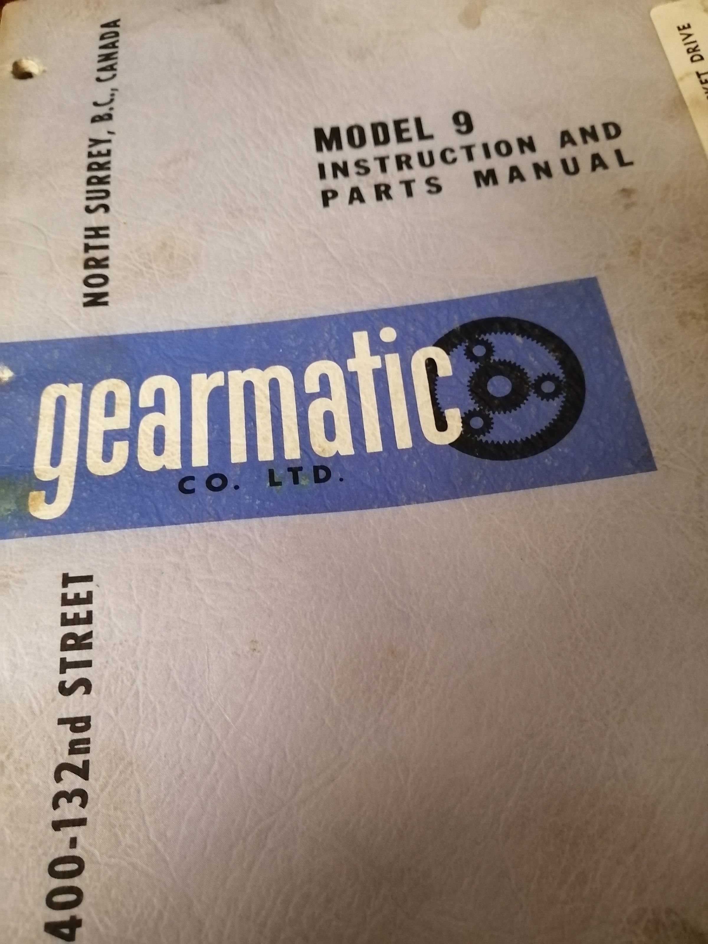 Model 9 instruction and parts manual