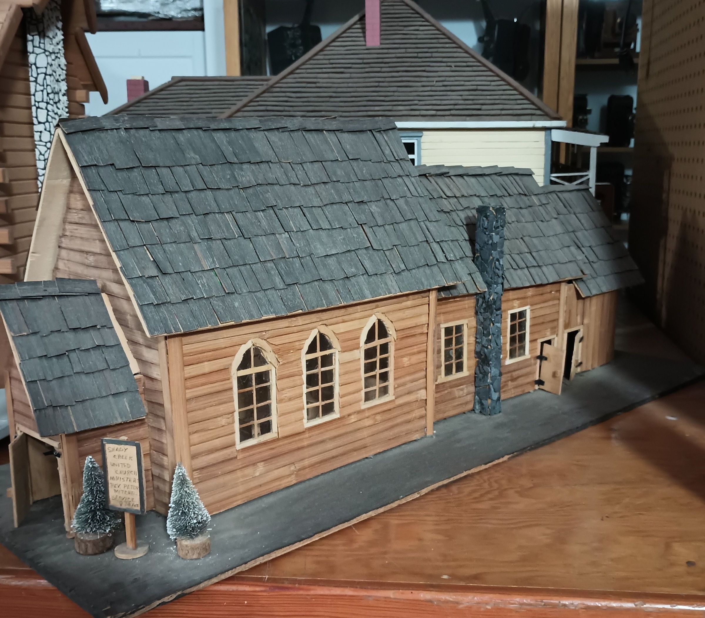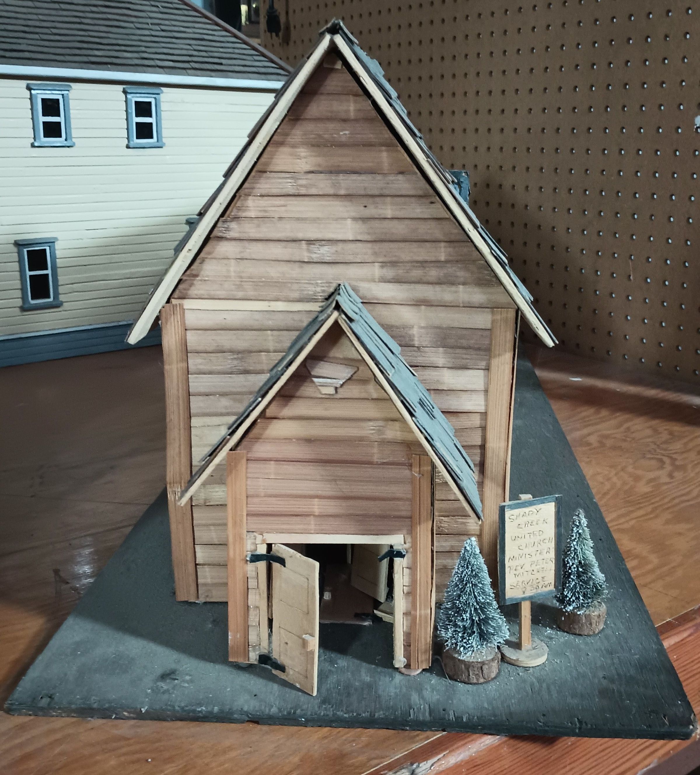Hand built model of Shady Creek Church, Central Saanich established 1862. The model is of the current building completed in 1895.Context
