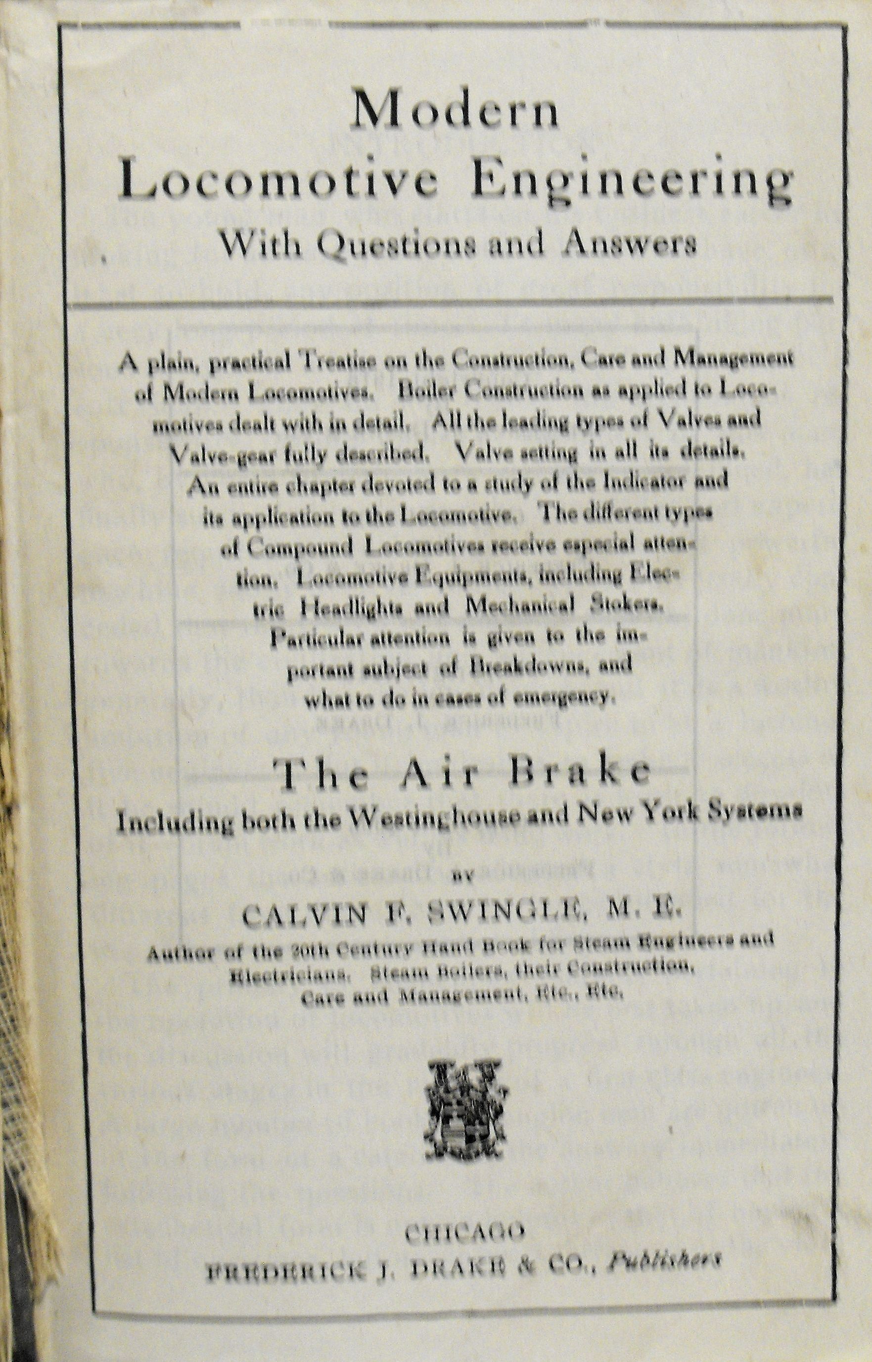 Modern locomotive engineering. With questions and answers. The air brake: Including both the Westinghouse and New York Systems