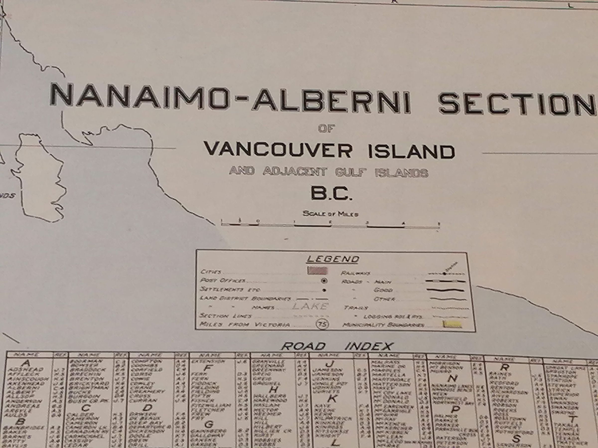 Nanaimo-Alberni section of Vancouver Island and adjacent Gulf Islands, B.C. Map.