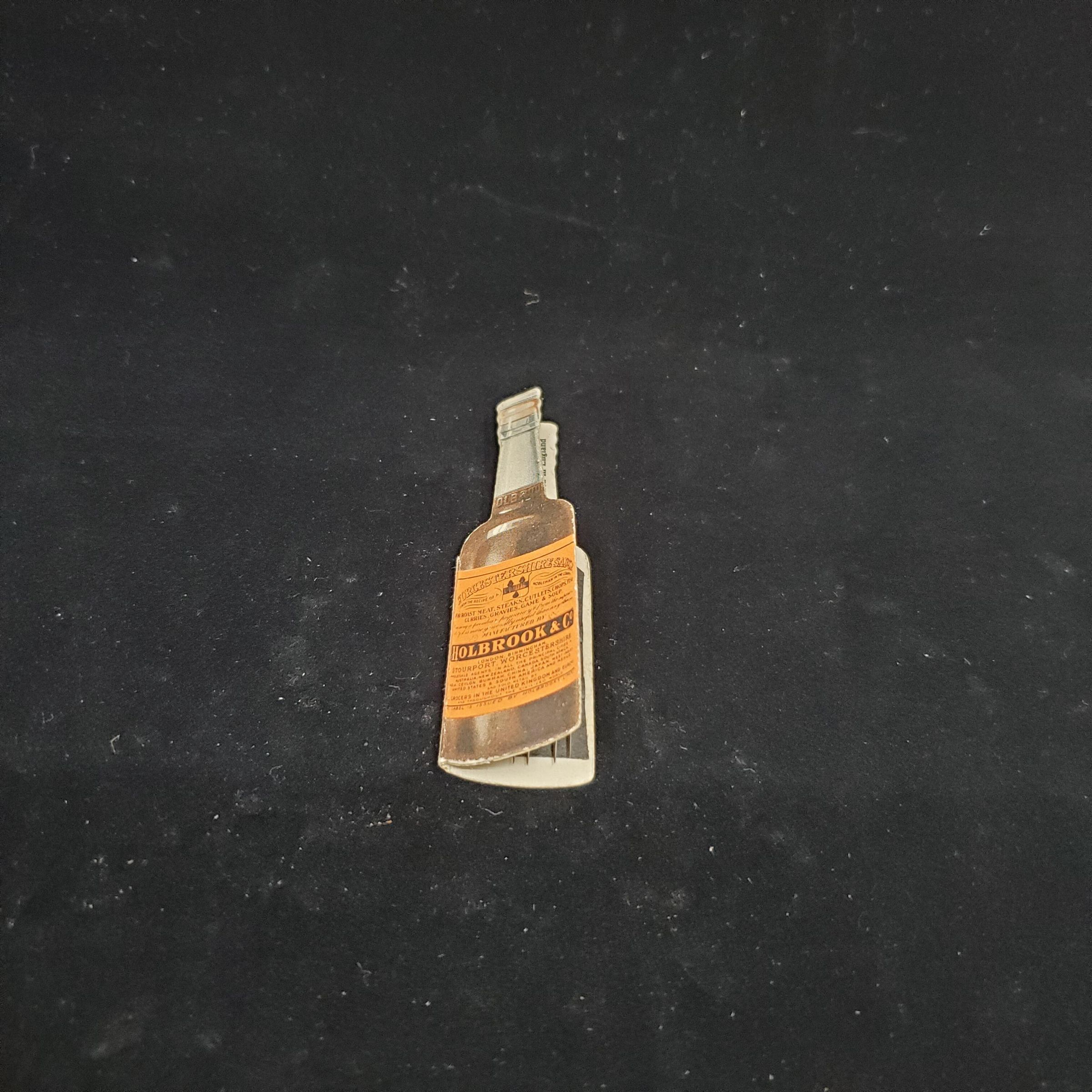 Bottle shaped cardboard needle book. Advertising.Brown and orange bottle. Advertising ÒHolbrook & Co.ÓInside needles and ÒNeedles & Printing produced in EnglandÓ plus poem-ÓWhatÕs sauce for the goose, we are told Is sauce for the gander too That HolbrookÕs sauce is the Sauce for the world Is a saying equally trueÓ.