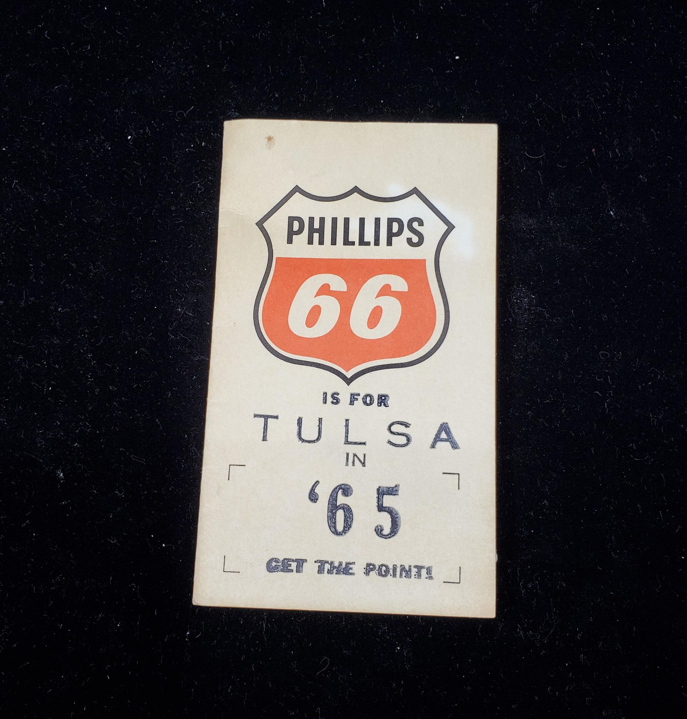 Cardboard Advertising Needle Packet.. Colours - red, black, cream. On front cover the 'Phillips 66' logo and 'Is For Tulsa in '65 Get The Points'. Back has advertising. Inside foil backed area with needles and needle threader plus advertising.