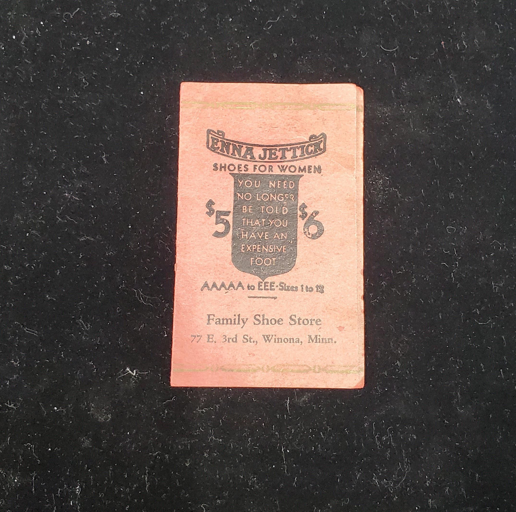 Cardboard Advertising Needle Kit., Red in colour. Front cover advertising ÒEnna Jettick Shoes For WomenÓ plus more .Inside paper packet of Picadilly needles Back cover has 1931 calendar.