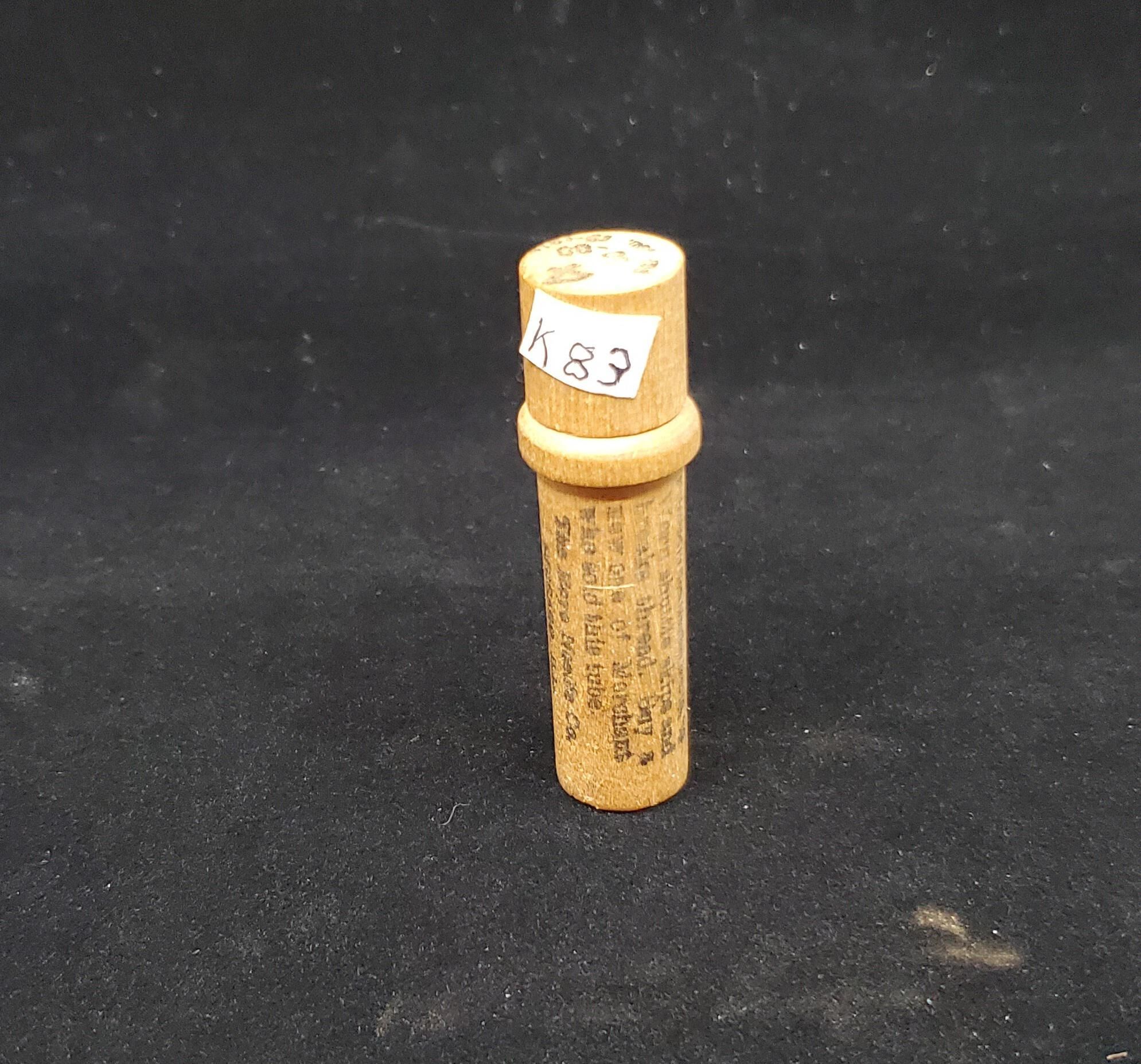 Wooden needle case for sewing machine needles.Light brown colour with black printing on outside. Reads Trade Mark The Boye Brand Reg. U.S. Pat. Off Jan. 18, 1910 plus more instructions and advertising.