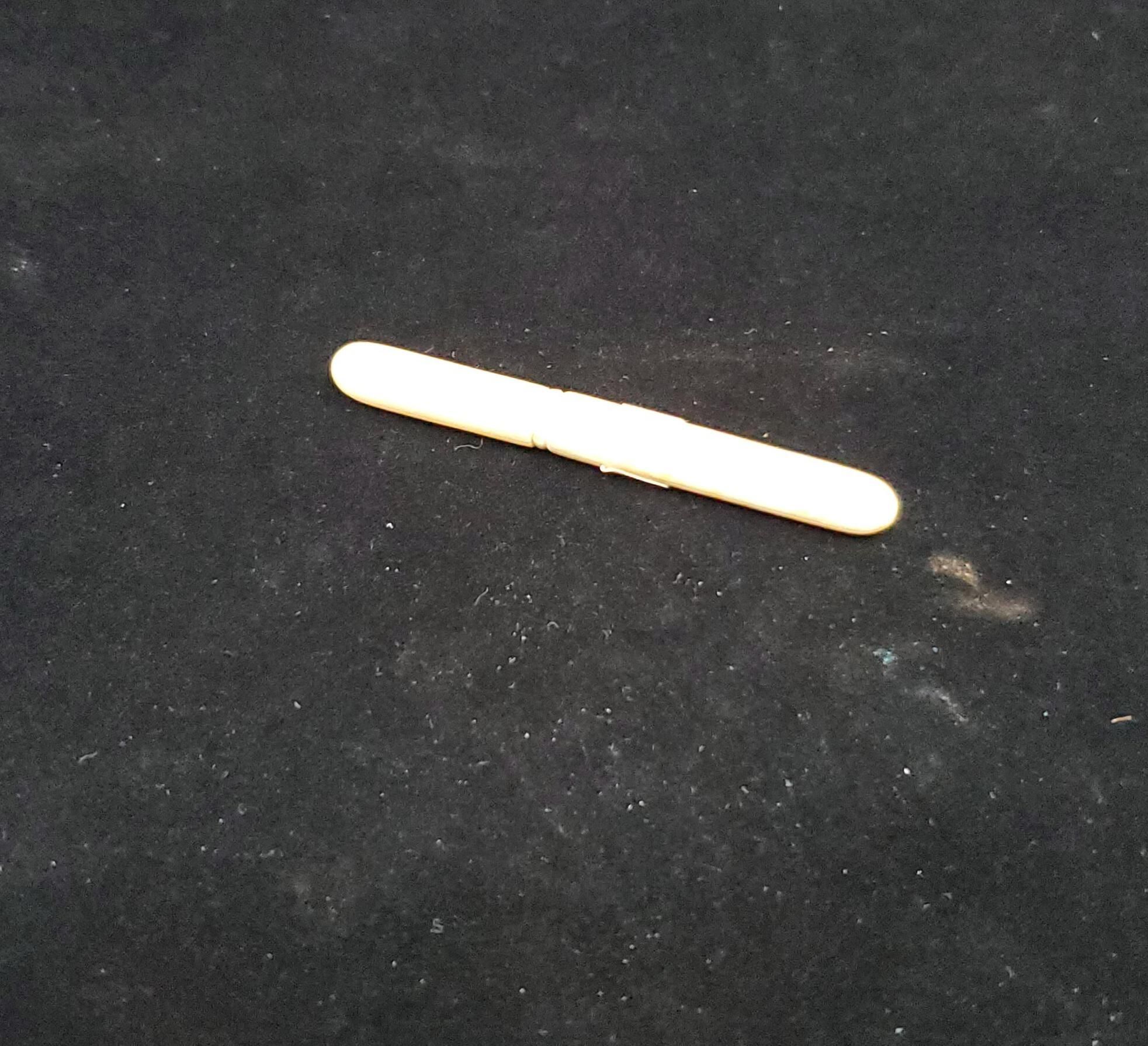 Long tubular needle case, ivory, cream coloured with yellow stain.Screw on top