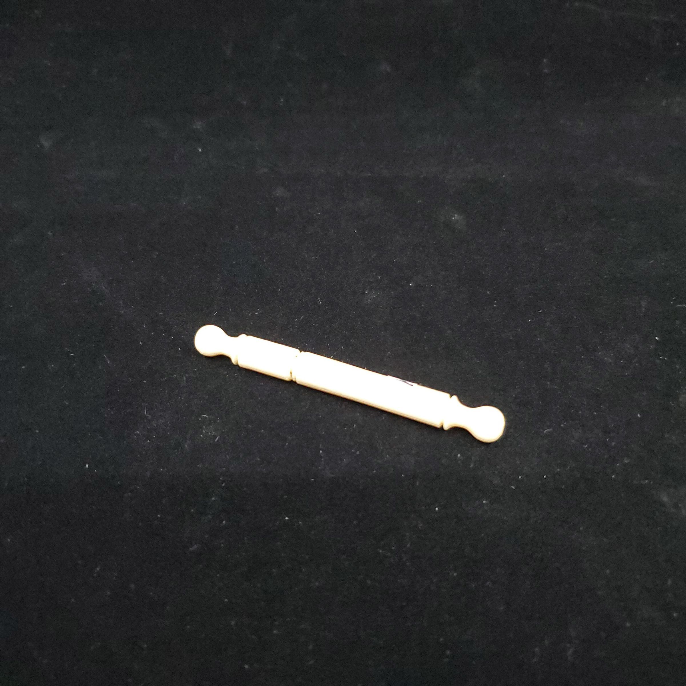 Bone needle case. Plain except for rounded top and bottom. Ivory coloured with light brown markings throughout.