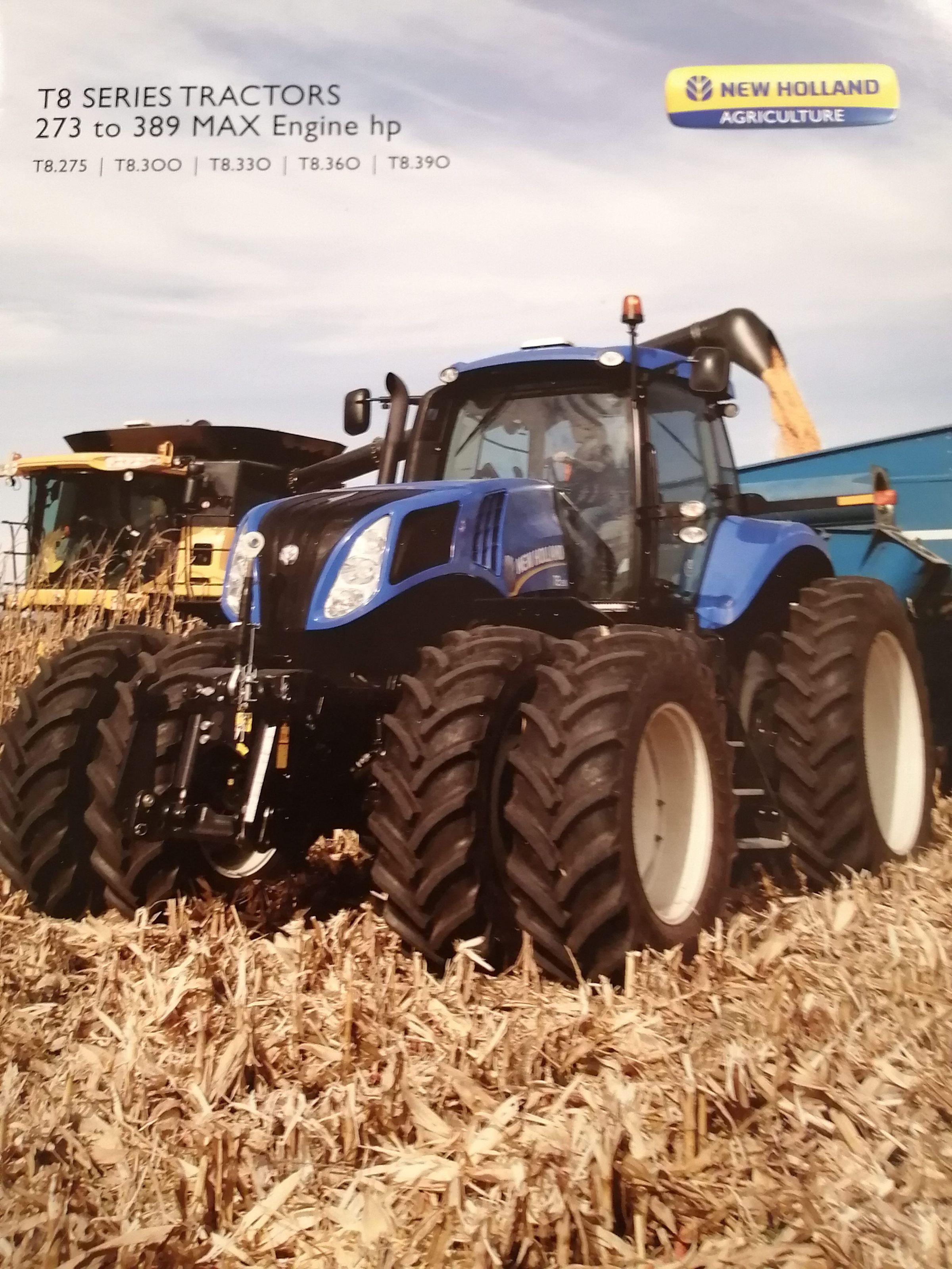 New Holland. T8 series tractors. 273 to 389 Max engine hp