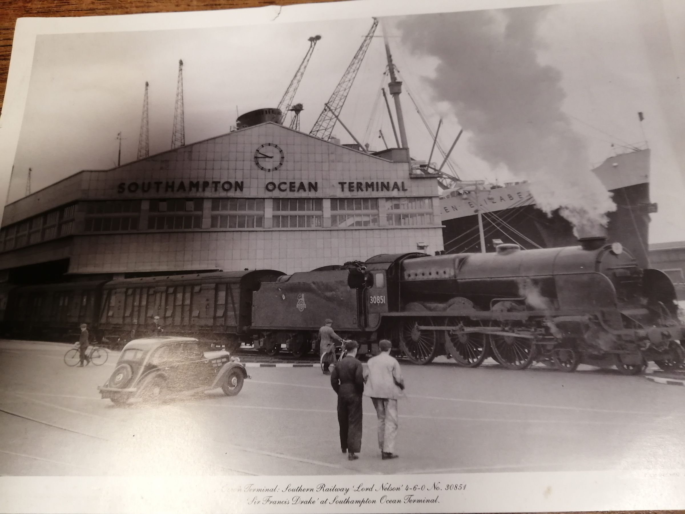 Ocean terminal. Southern railway. "Lord Nelson." 4-6-0. No 30851. "Sir Frances Drake" at Southampton Ocean Terminal.
