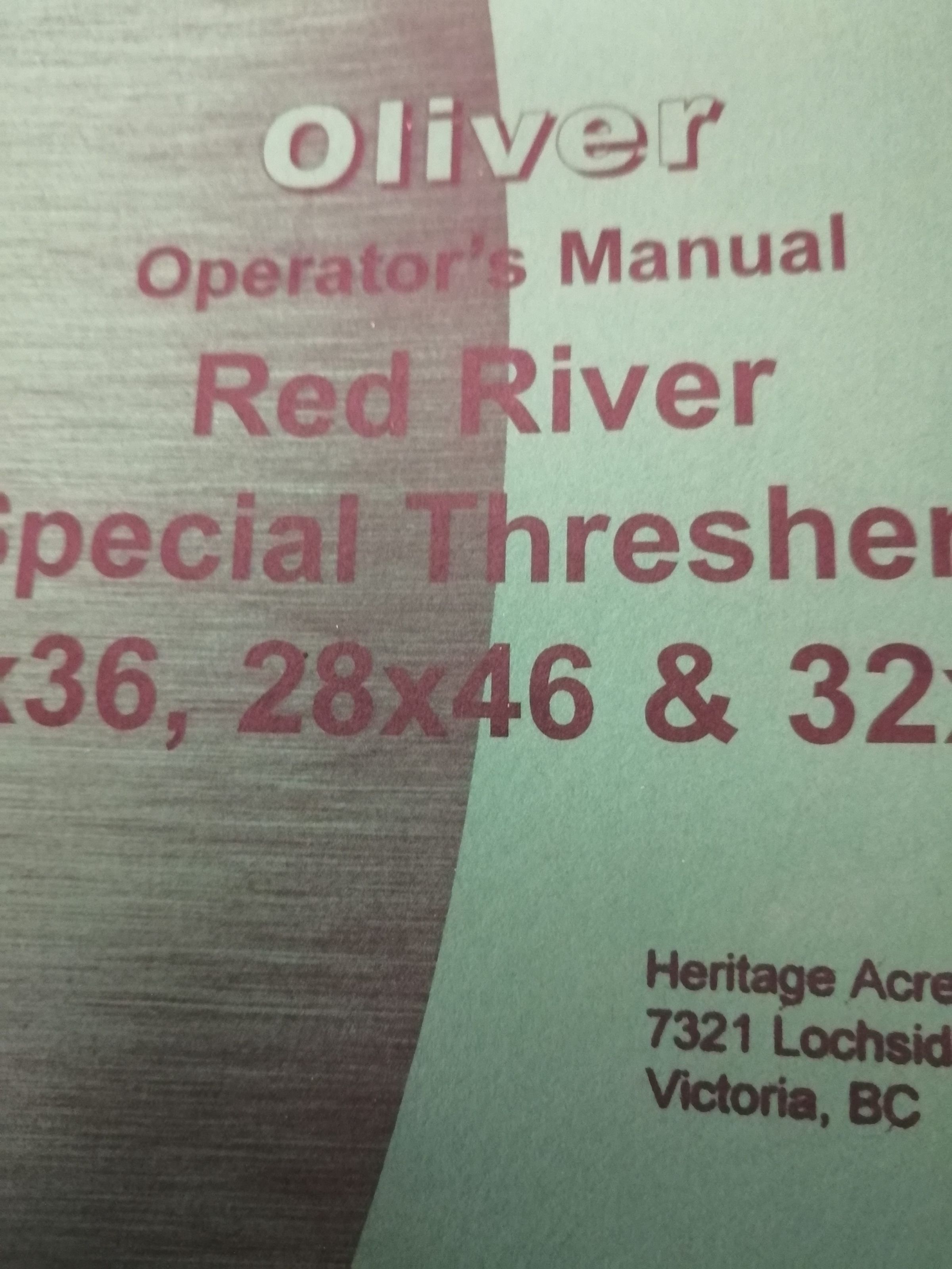 Oliver operator's manual. Red River special threshers 22x36, 28x46 and 32x56