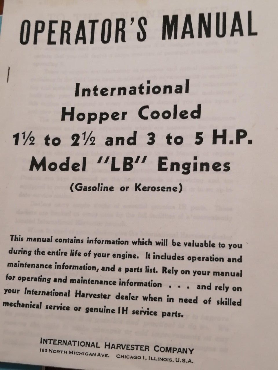 Operator's manual. International hopper cooled 1 1/2 to 2 1/2 and 3-5 HP. model "LB" enginers.