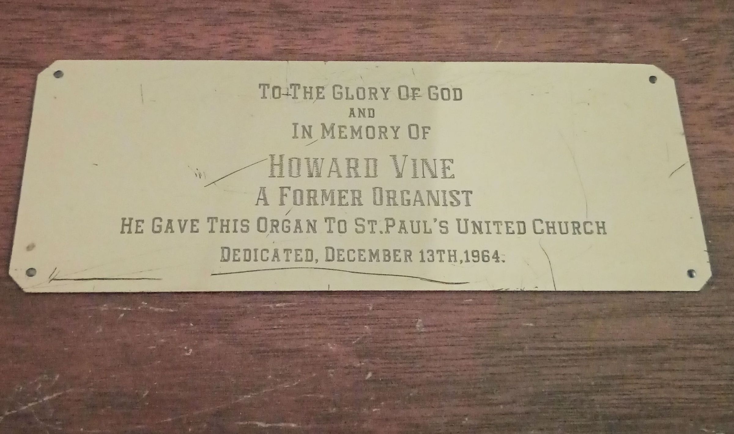 He Gave This Organ To St. Paul's United Church