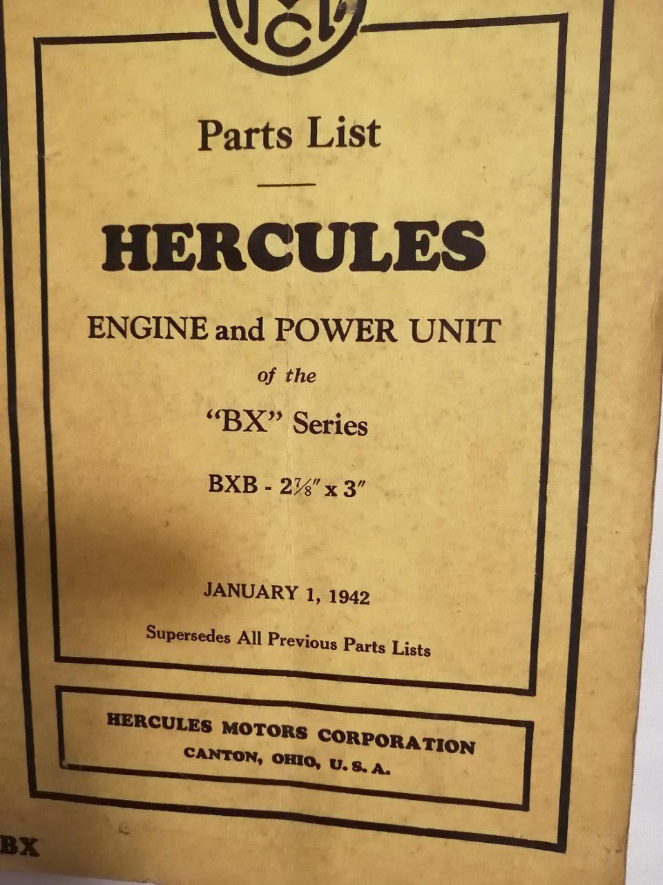 Parts list. Hercules engine and power unit of the "BX" series. BxB 2 7/8" x 3"