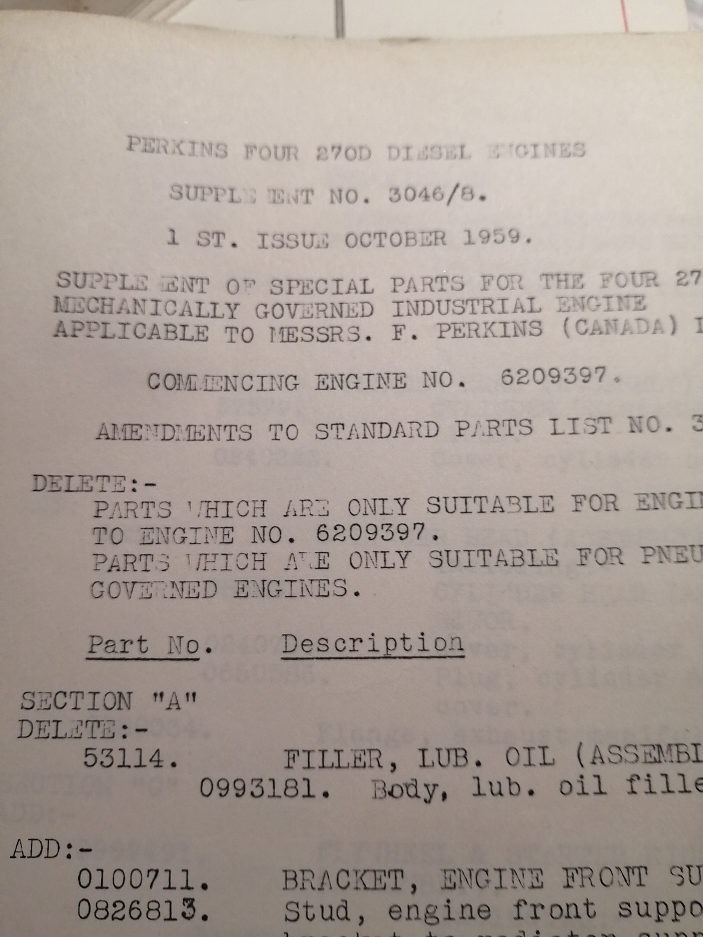 Perkins four 270D diesel engines