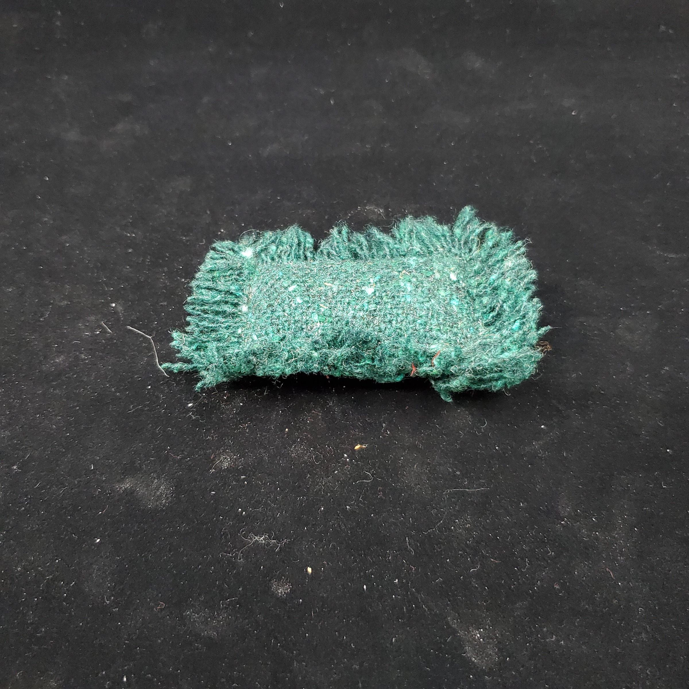 Small pin cushion made of Donegal green tweed. . Fringe all around.
