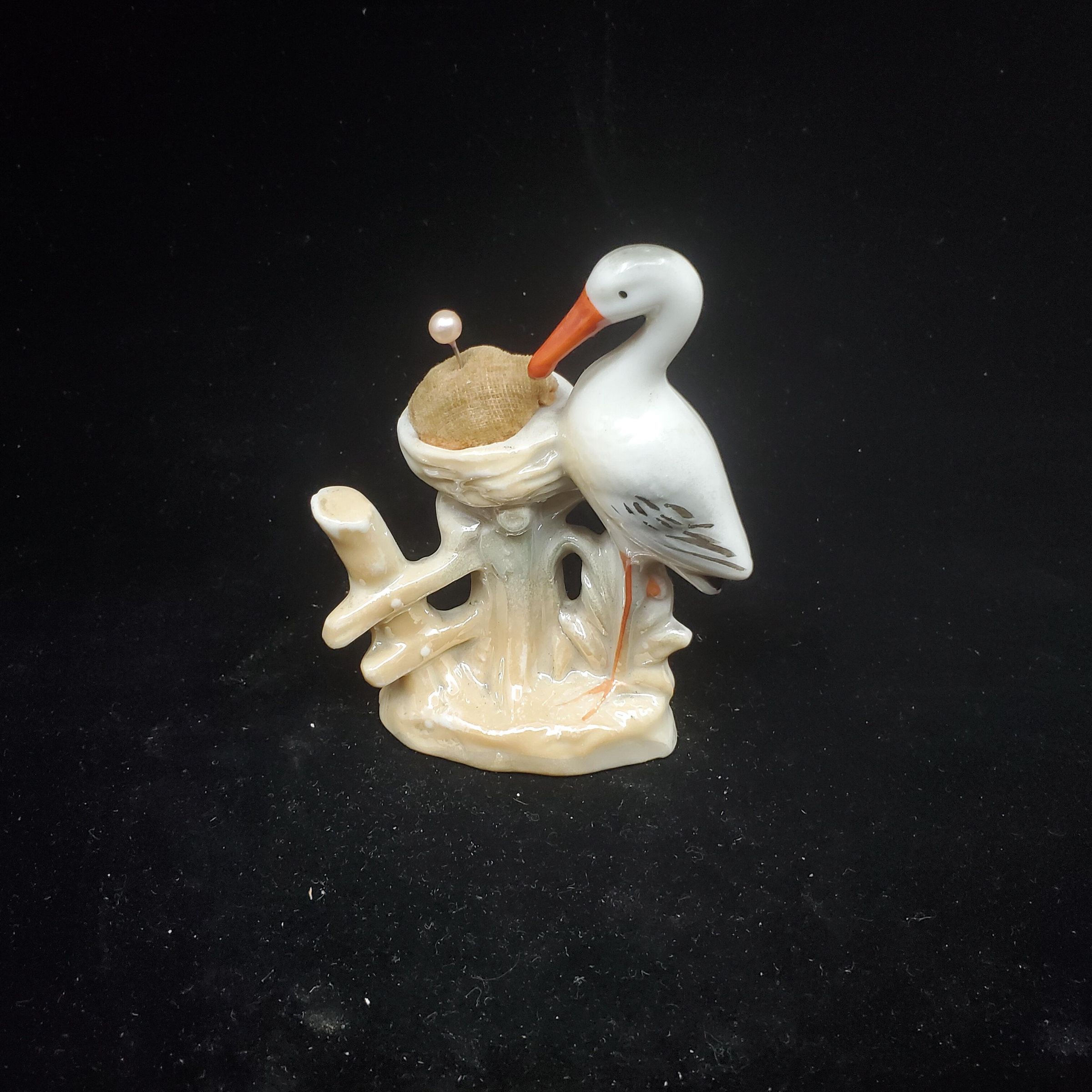 Pin cushion in a small silver pig. Englis```````h hallmarks on the silver for Birmingham 1906, maker H.M.Cloth of cushion well worn caaÕt tell original color.