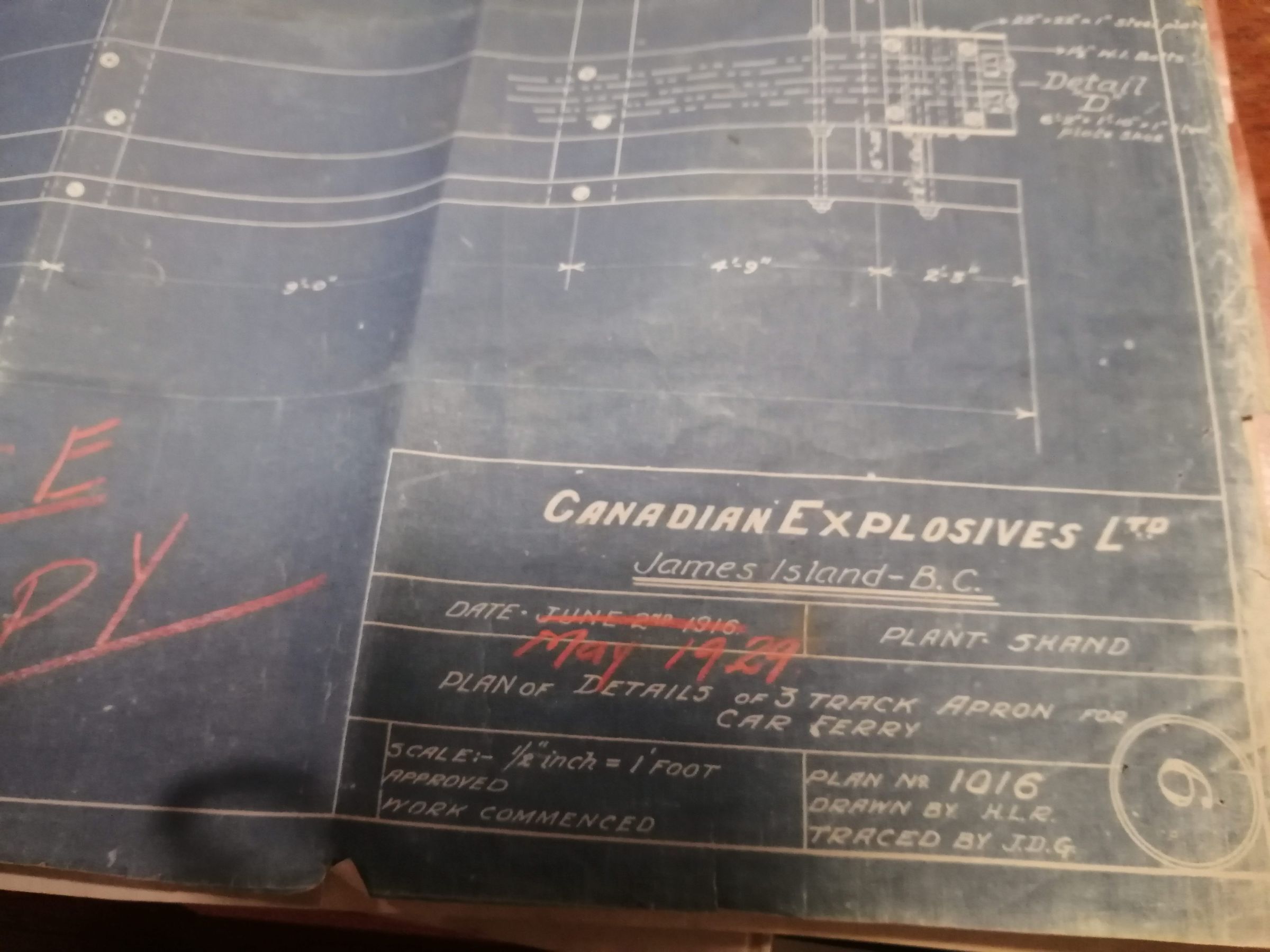 Plan of details of 3 track apron car ferry. James Island. Technical drawing