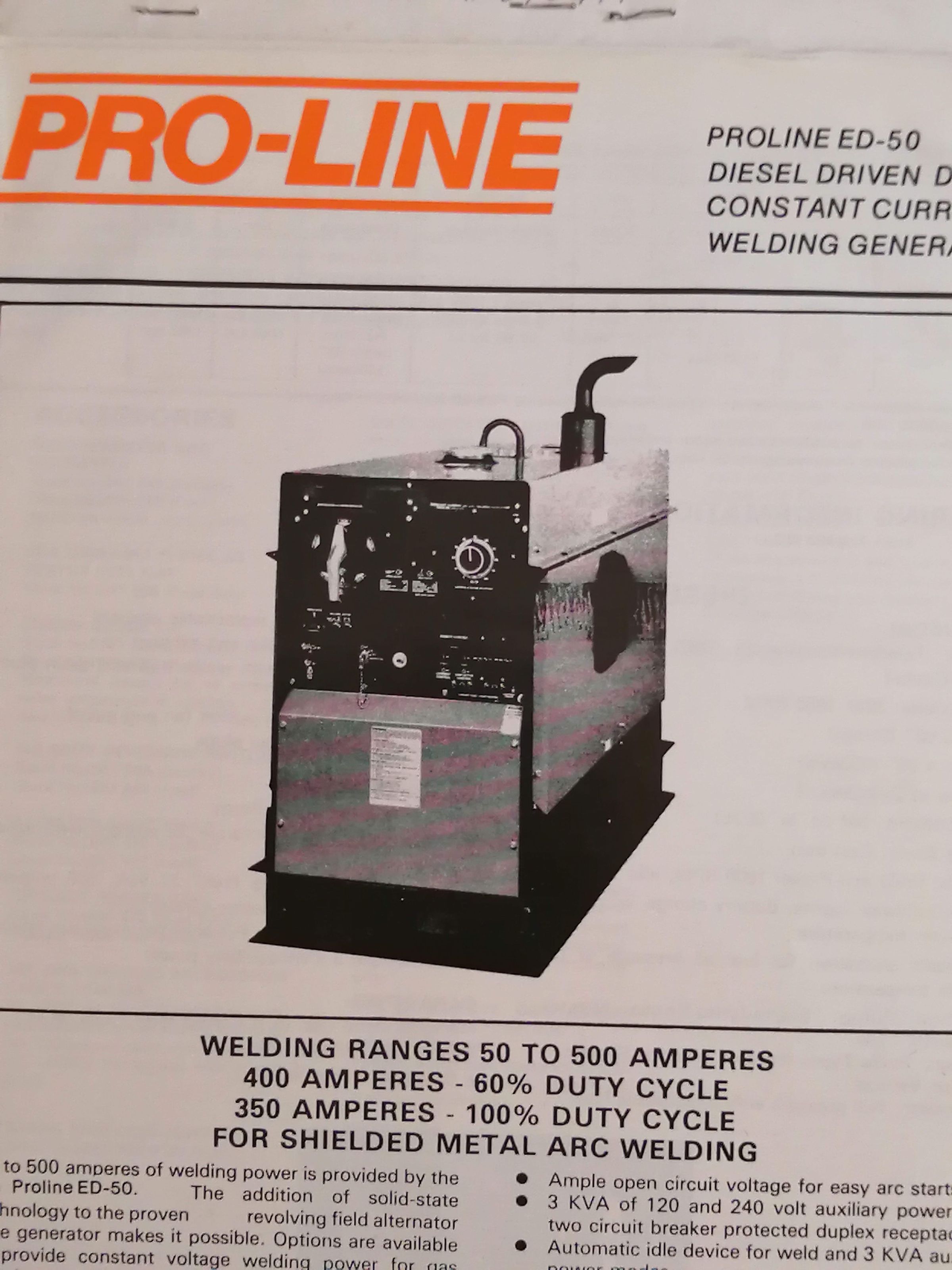 Proline ED-50, Diesel driven, constant current welding generator