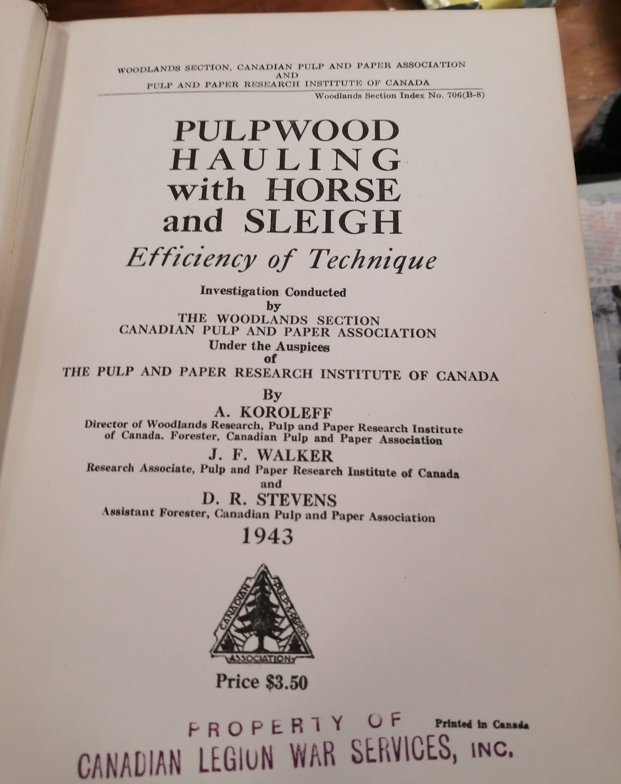 Pulp wood hauling with horse and sleigh. Efficiency of technique
