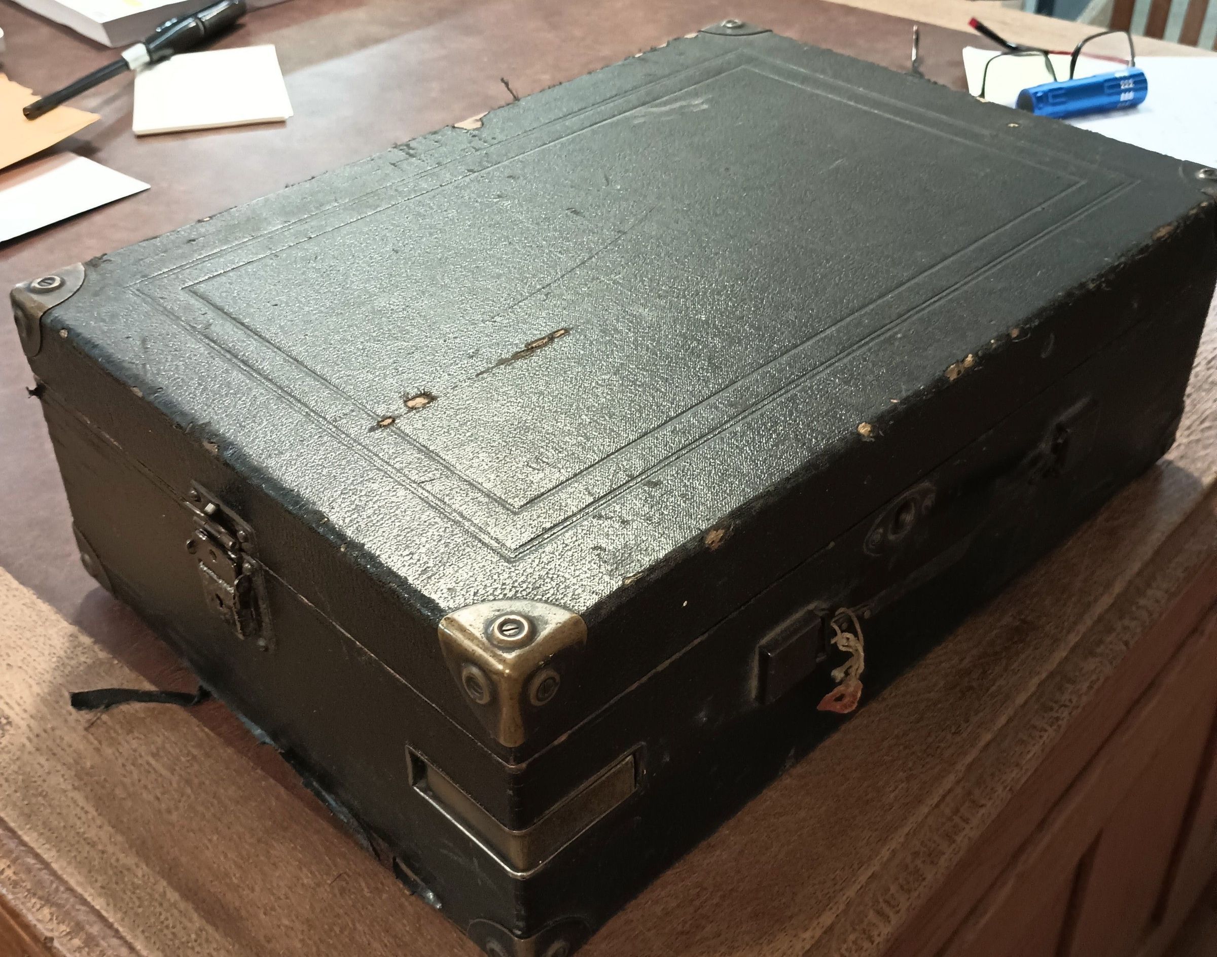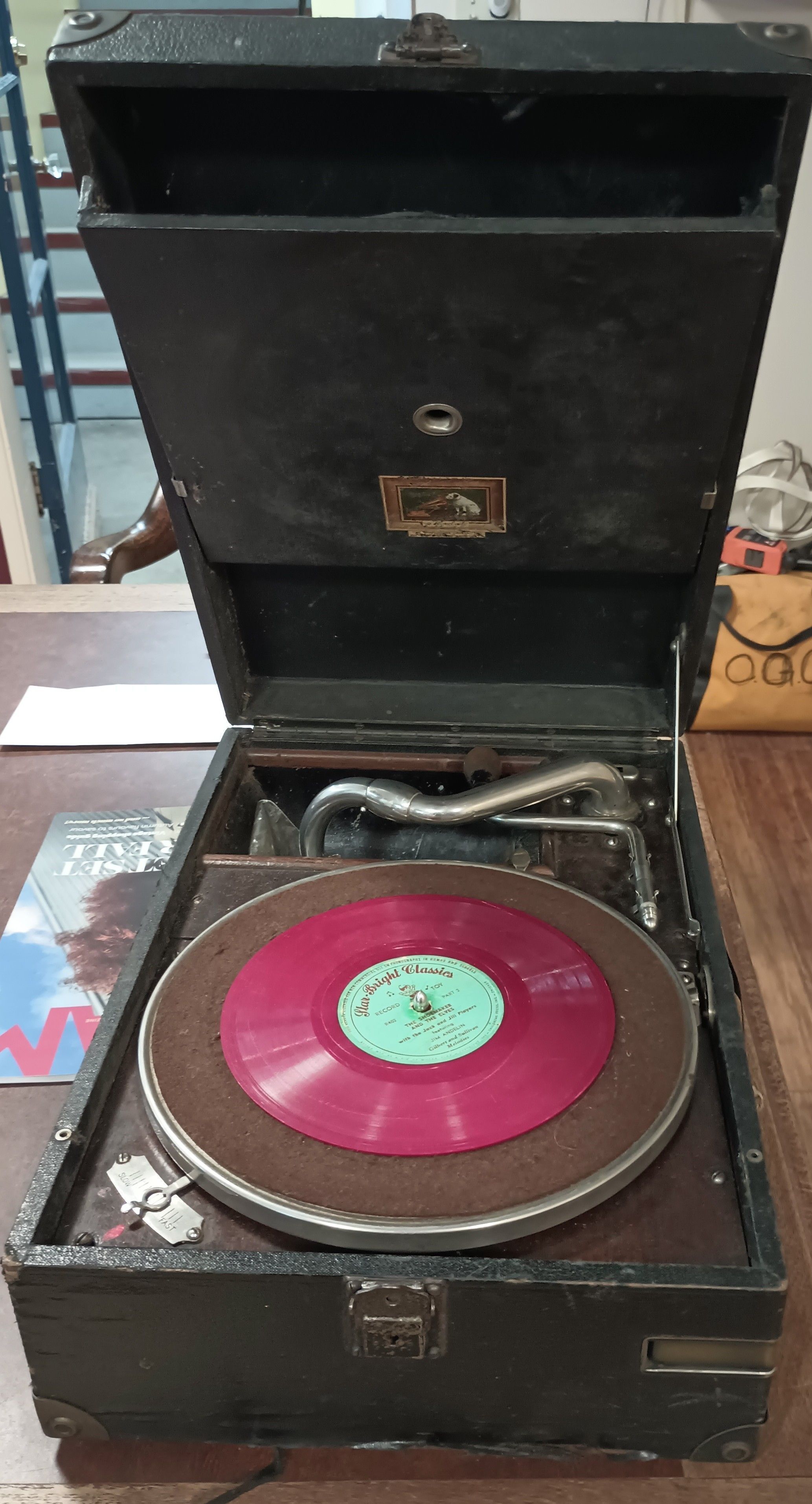 Portable record player manufactured by RCA circa 1930's.