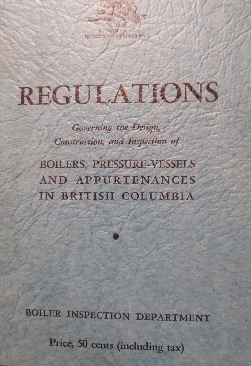 Regulations governing the design, construction, and inspection of boilers, pressure-vessels and appurtenances in British Columbia.