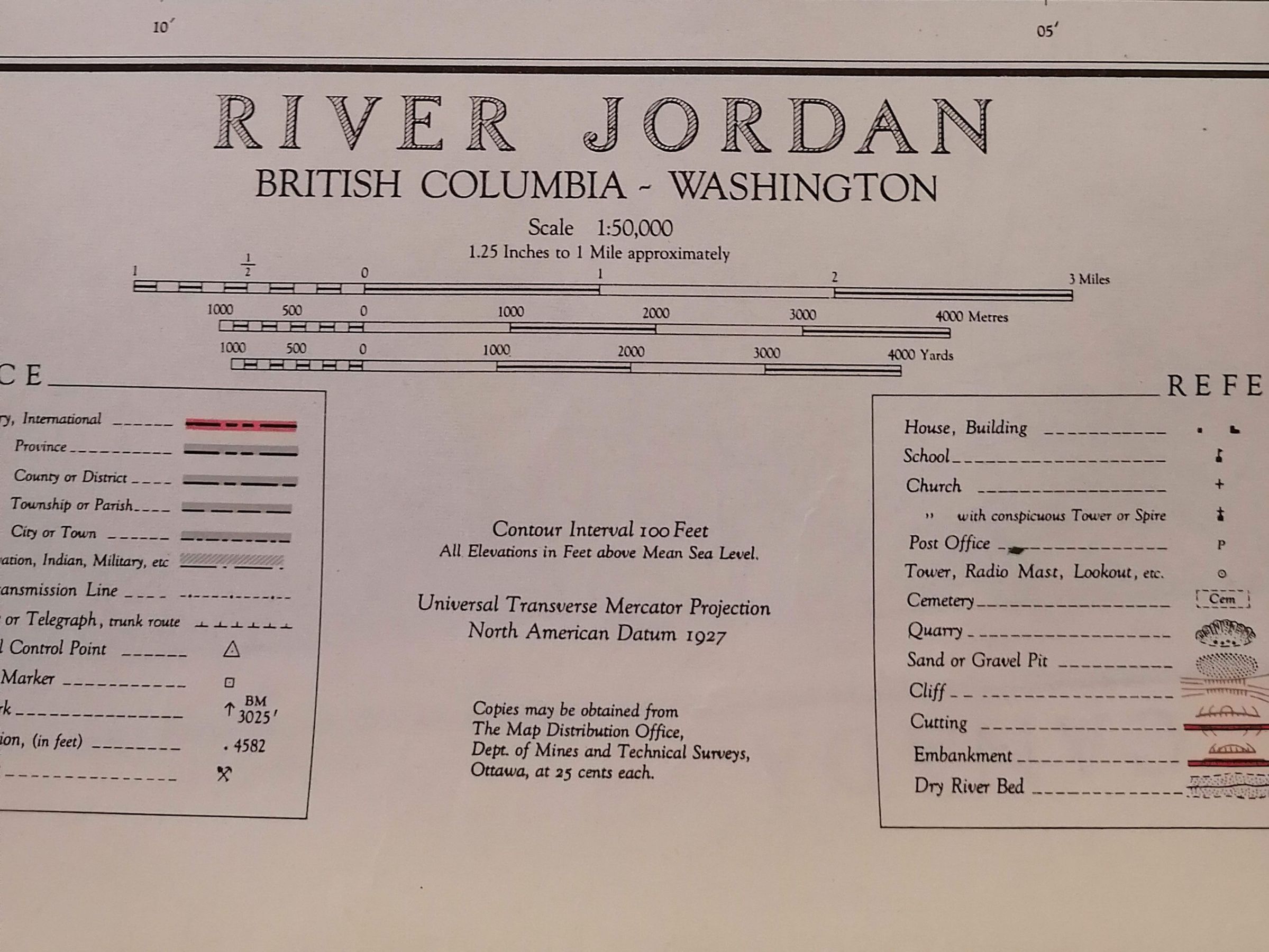 River Jordan. British Columbia - Washington. Map