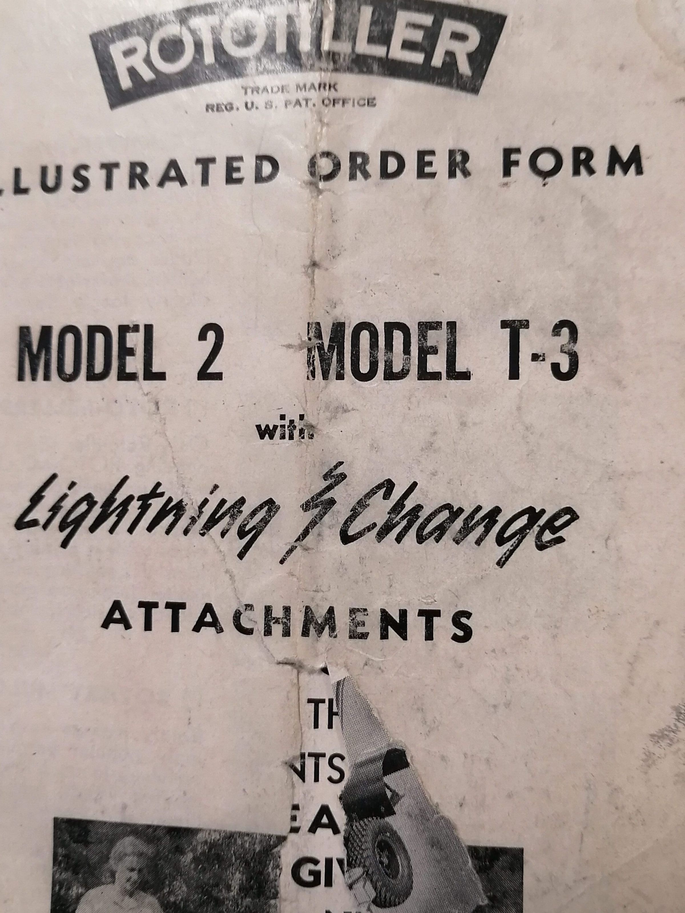 Rototiller. Illustrated order form. Model 2, model T3 with lightning change attachments