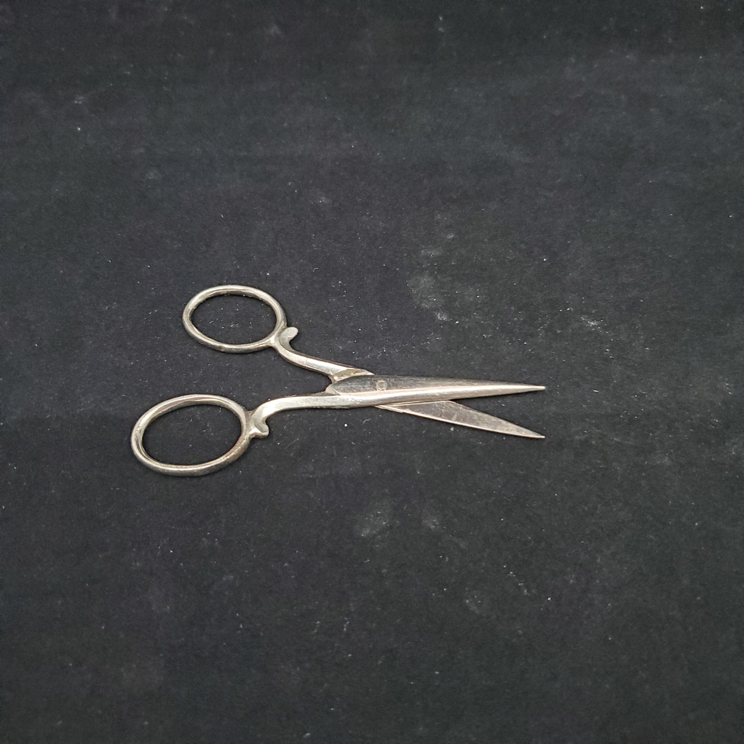 Steel embroidery scissors. Nicely shaped shanks. No marks.