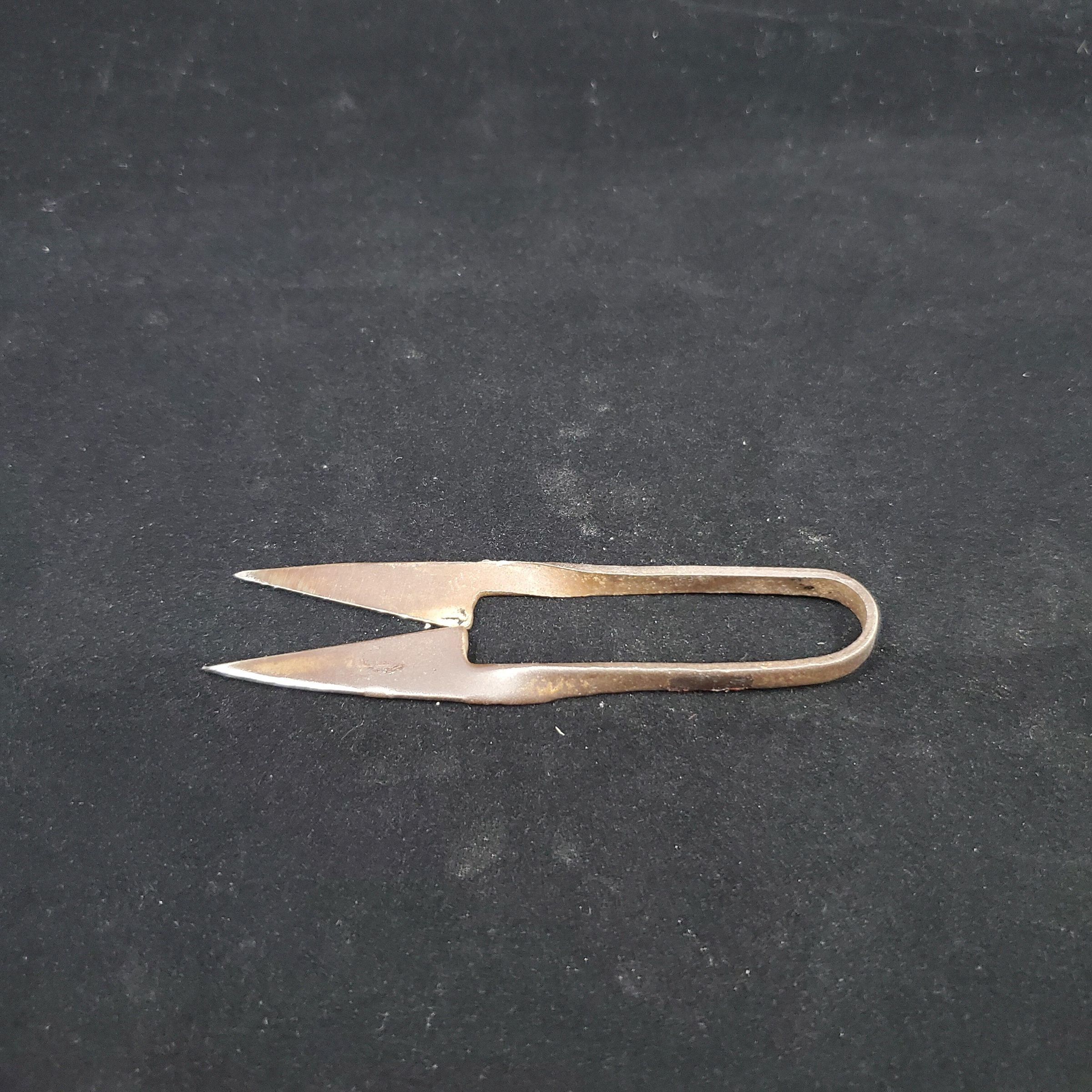 Snipper type steel scissors Dark brown-black (Blacker than picture). Have a spring action - usually called shears in books.