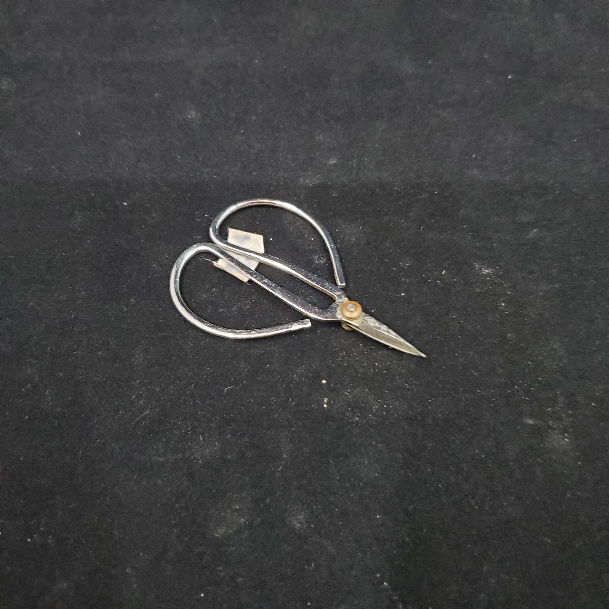 Small Oriental type scissors. Steel. Packet of MOP buttons (4) still on card. with 29 cent price.