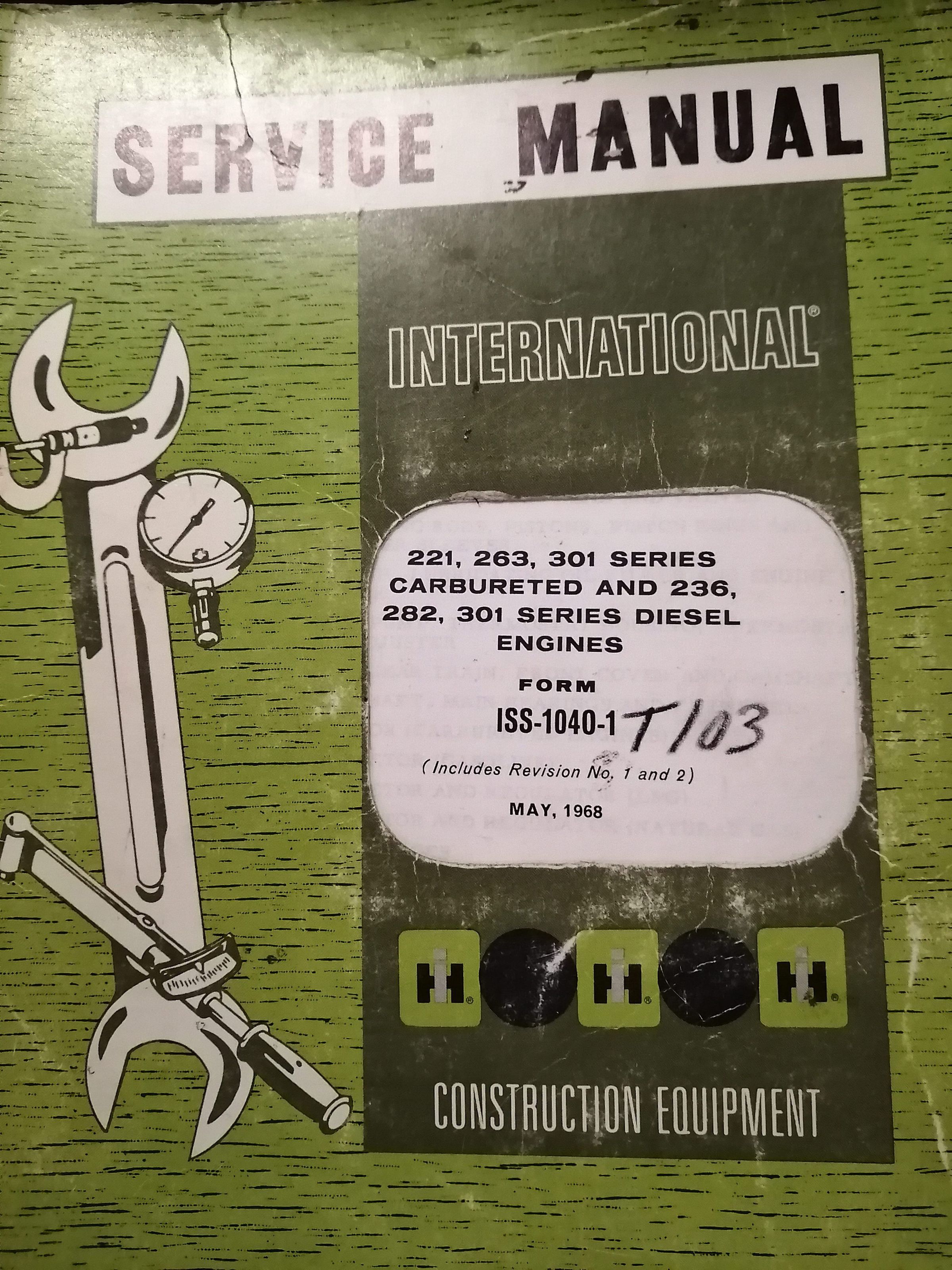 Service manual international. 221, 263, 301, series carbureted and 236, 282, 301 series diesel engines. Construction equipment