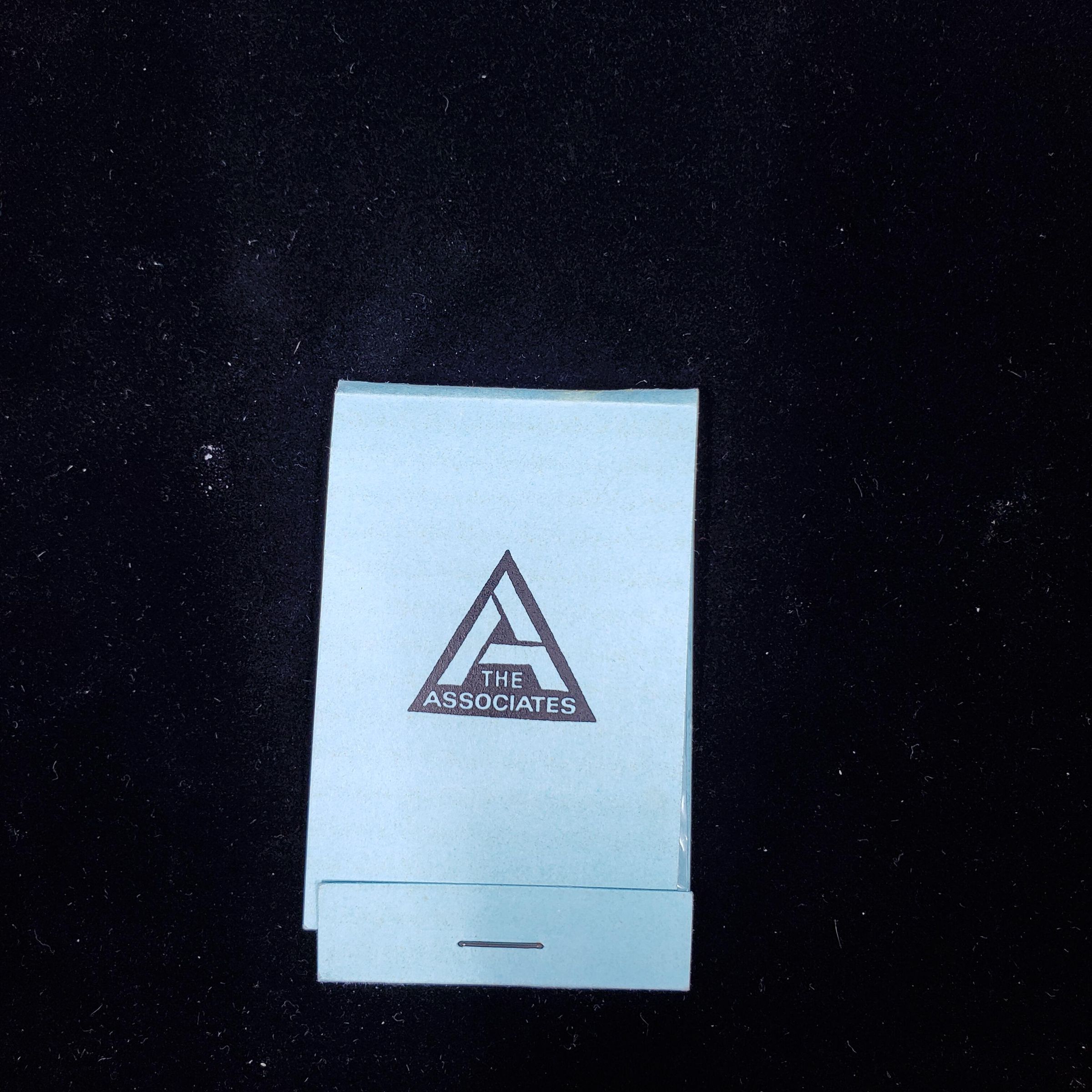 Match folder type Advertising sewing kit.Green colour with black print..On outside logo of the letter A with The Associates inside. On back ÒSpecialists in Complete Financing ServicesÓ Inside clear plastic envelope with coloured threads, buttons, safetypin and needle.