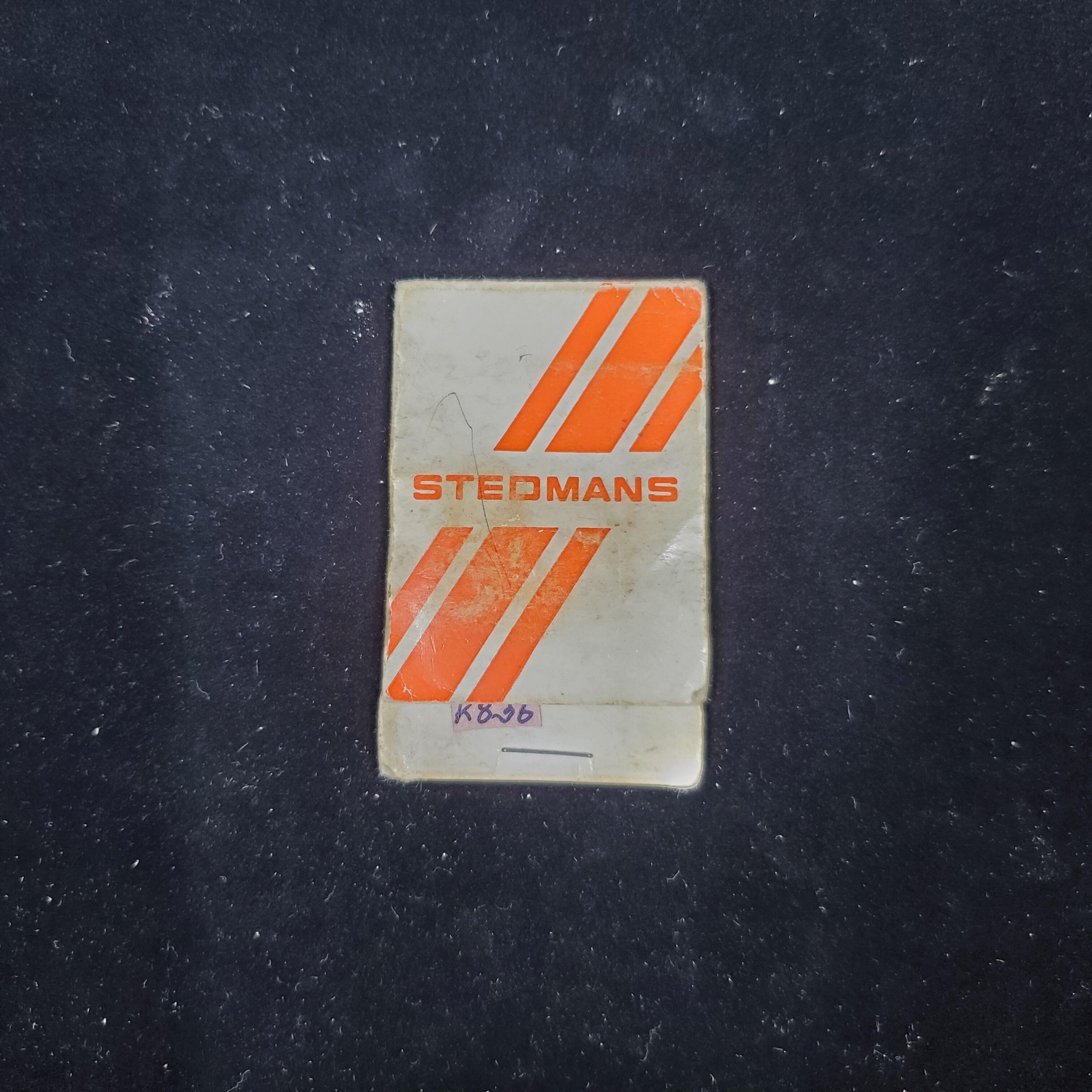 Match folder type cadboard sewing kit. Advertsing. Colours - white red. Outside folder in red printÓStedmanÕsÓ Back cover reads ÒStedmanÕs for cnvenience good values friendly serviceÓ Inside plastic envelope with card of threads, needle, pin and buttons.