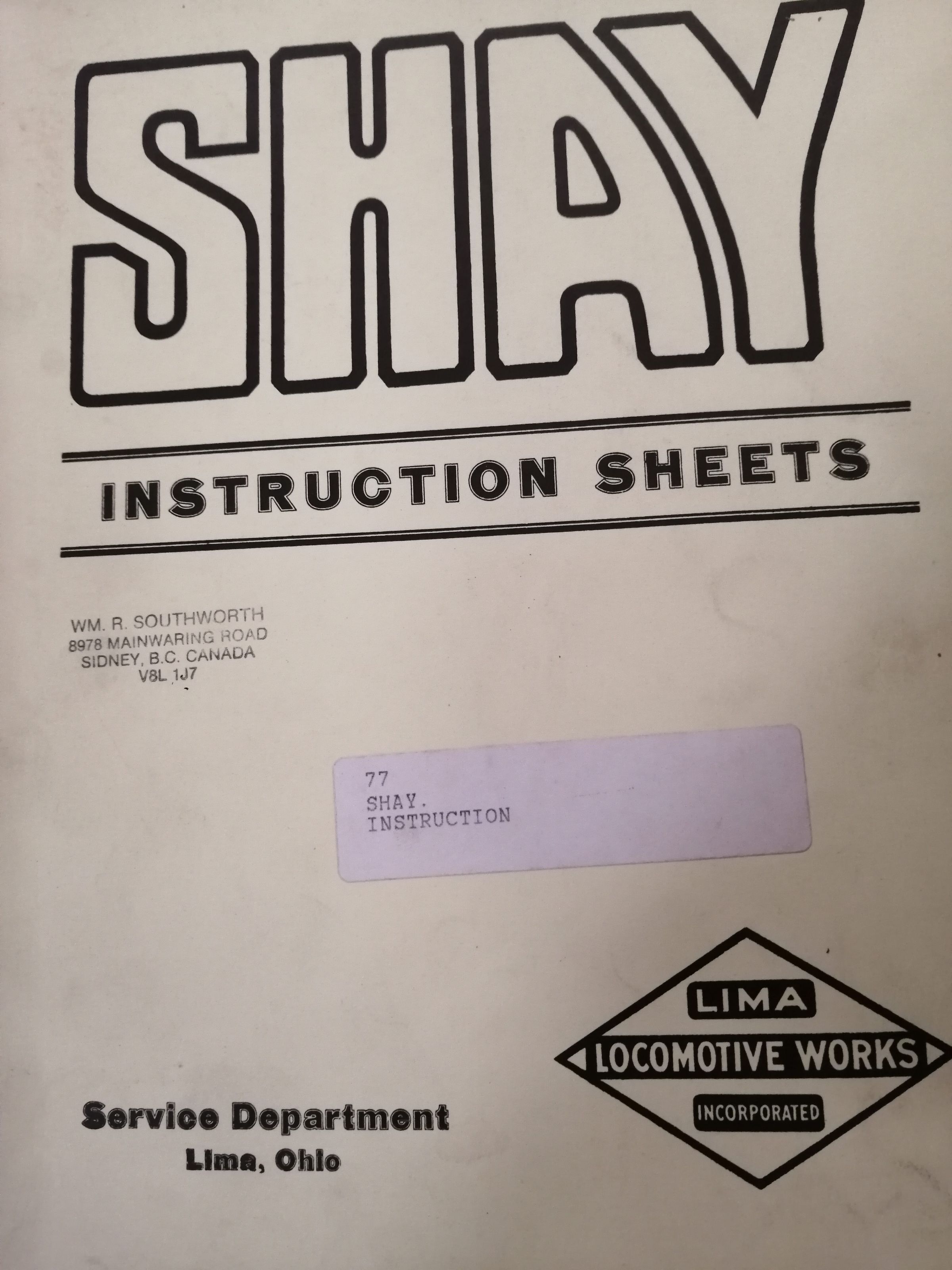 Shay instruction sheets