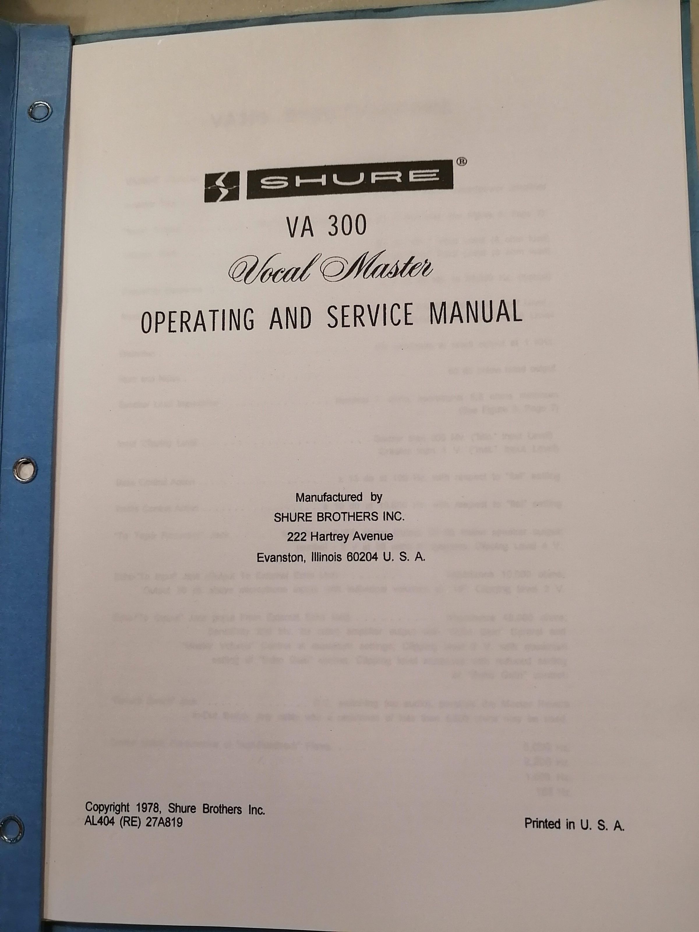 Shure VA 300 Vocal Master operating and service manual