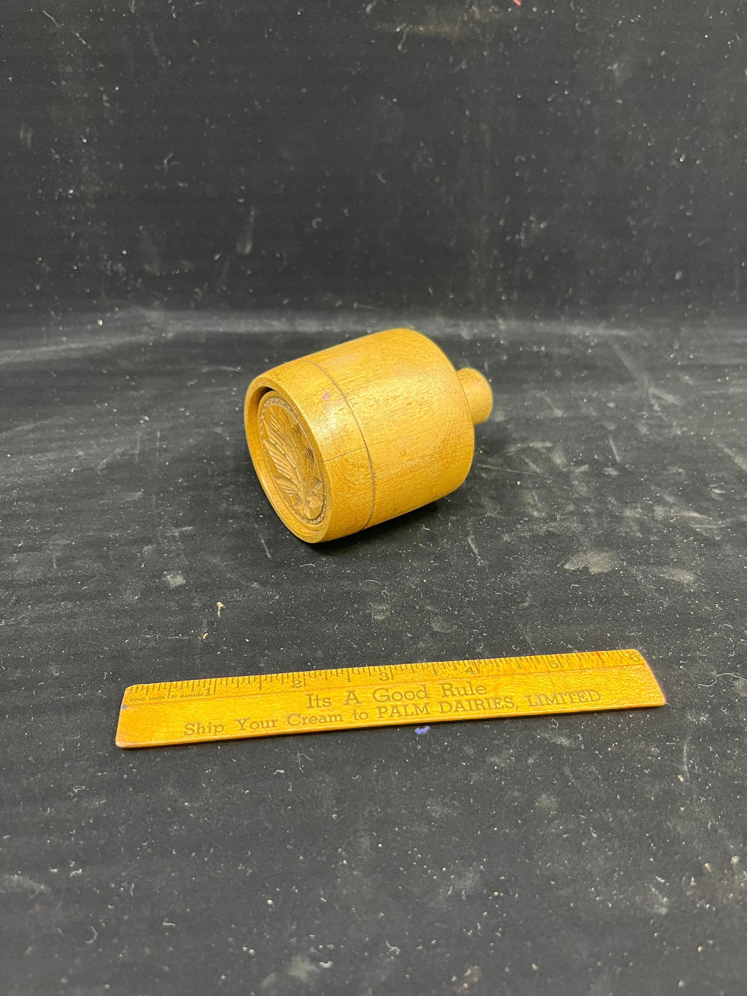 small wooden butter mold and press