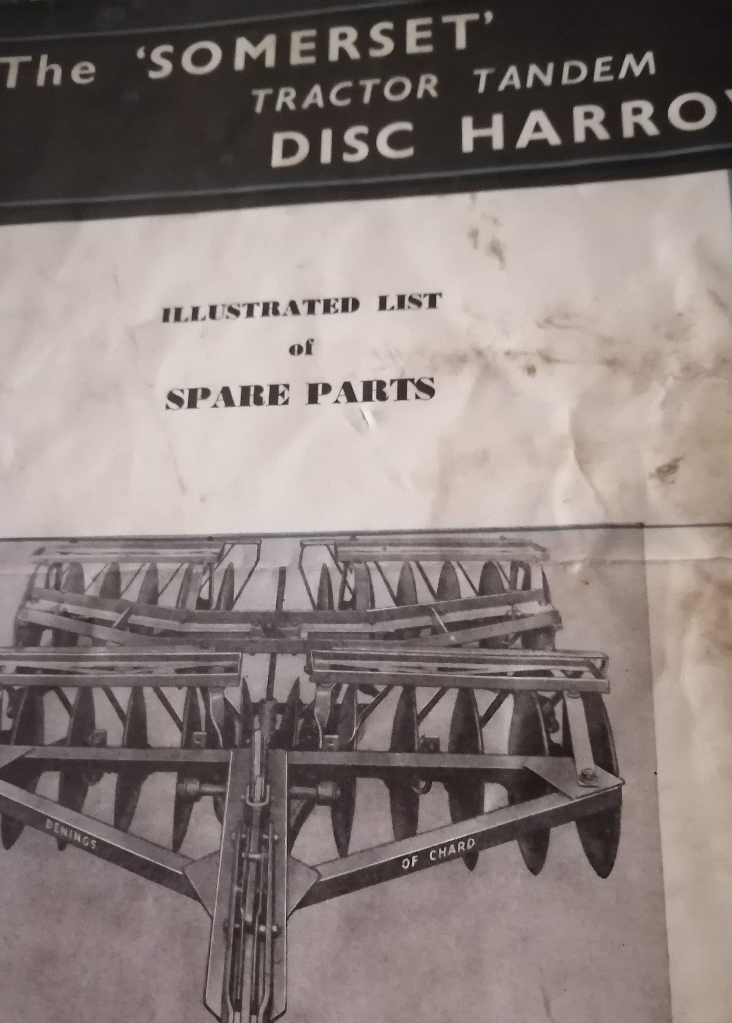 "Somerset" tractor tandem disc harrow. Illustrated list of spare parts