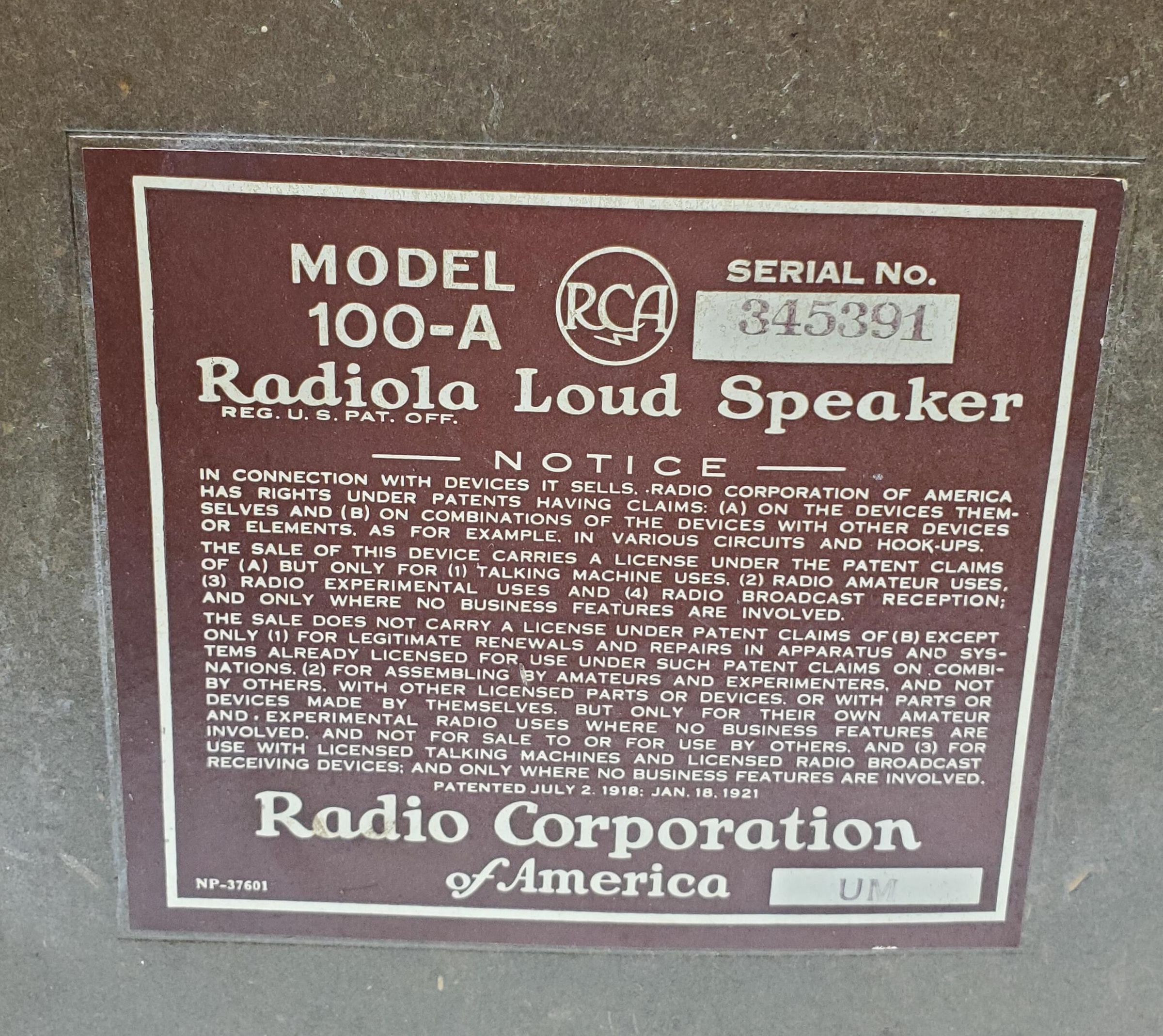 Speaker, Radiola Load Speaker, Model 100-A