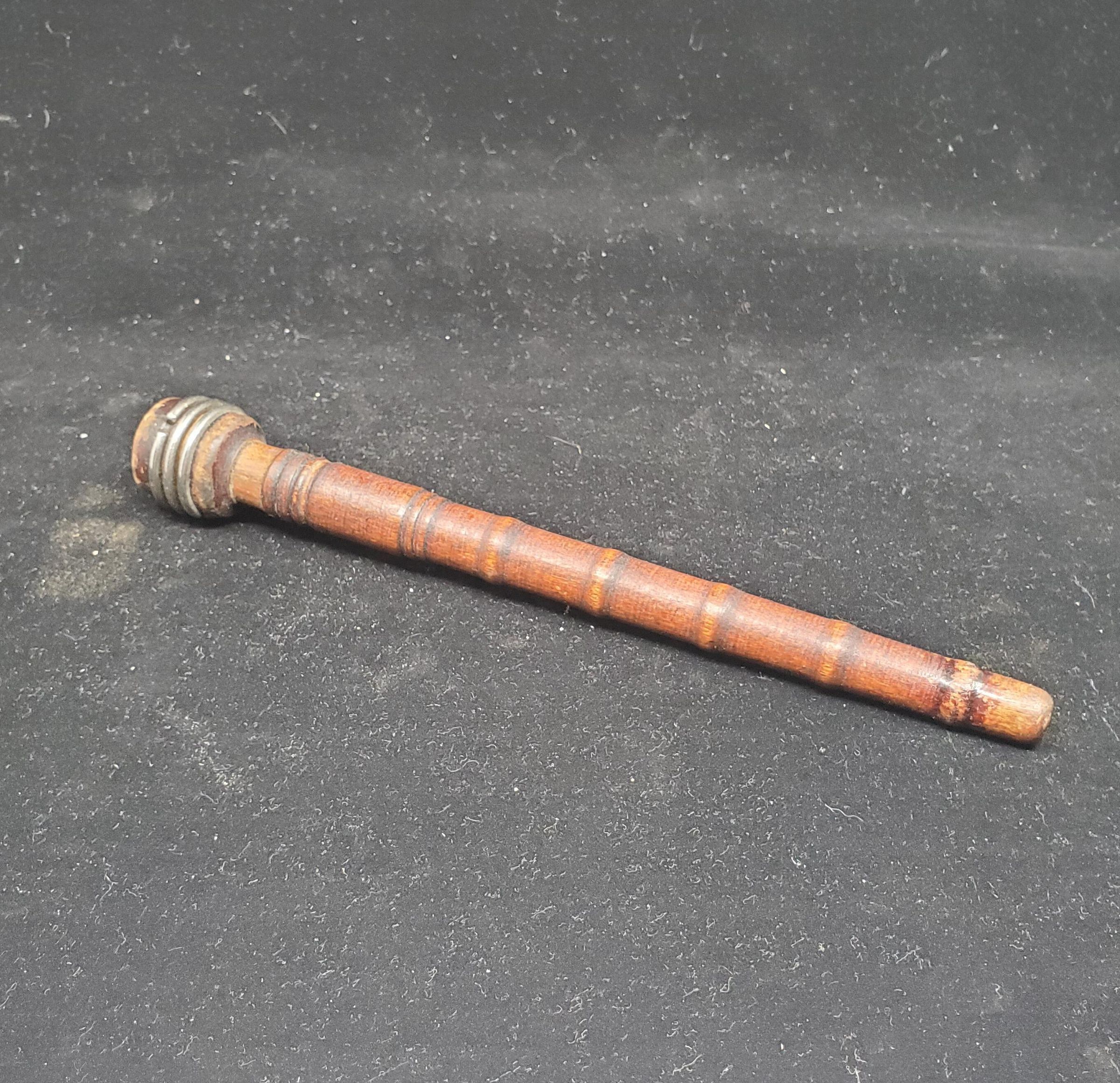 3 spools 1) mid brown colour, tall, thin type with 3 metal rings near base. Wood has ins and outs along length. 2) dark brown coloyr, also with ins and outs along lenth and 3 metal rings near base 3) mid brown colour, shorter and wider than first two with a 1/4Ó copper band nat top.