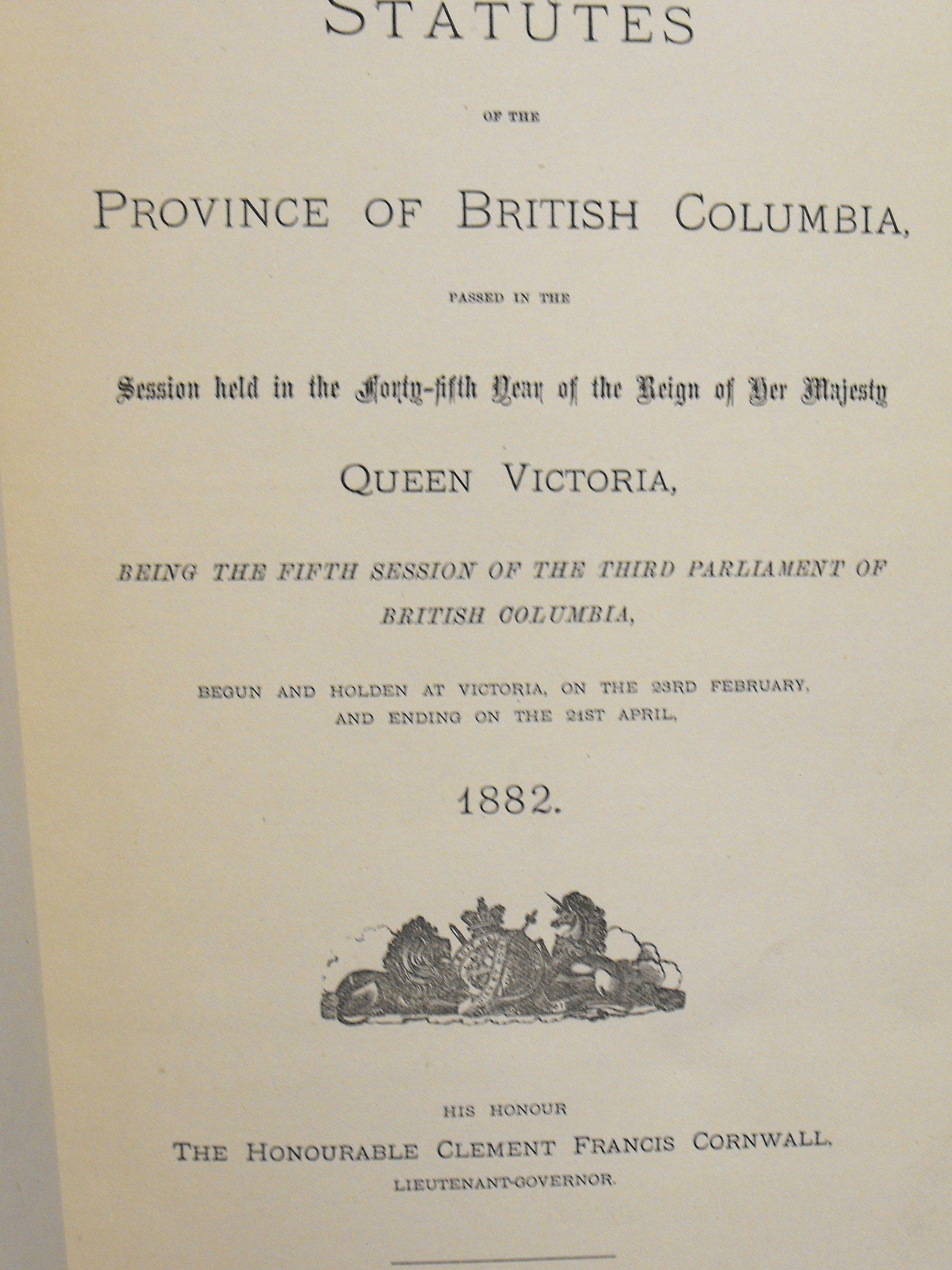 Statutes of the Province of British Columbia passed in the session held in the forty fifth year of the reign of Her Majesty Queen Victoria, being the fifth session of the third parliament of British Columbia.