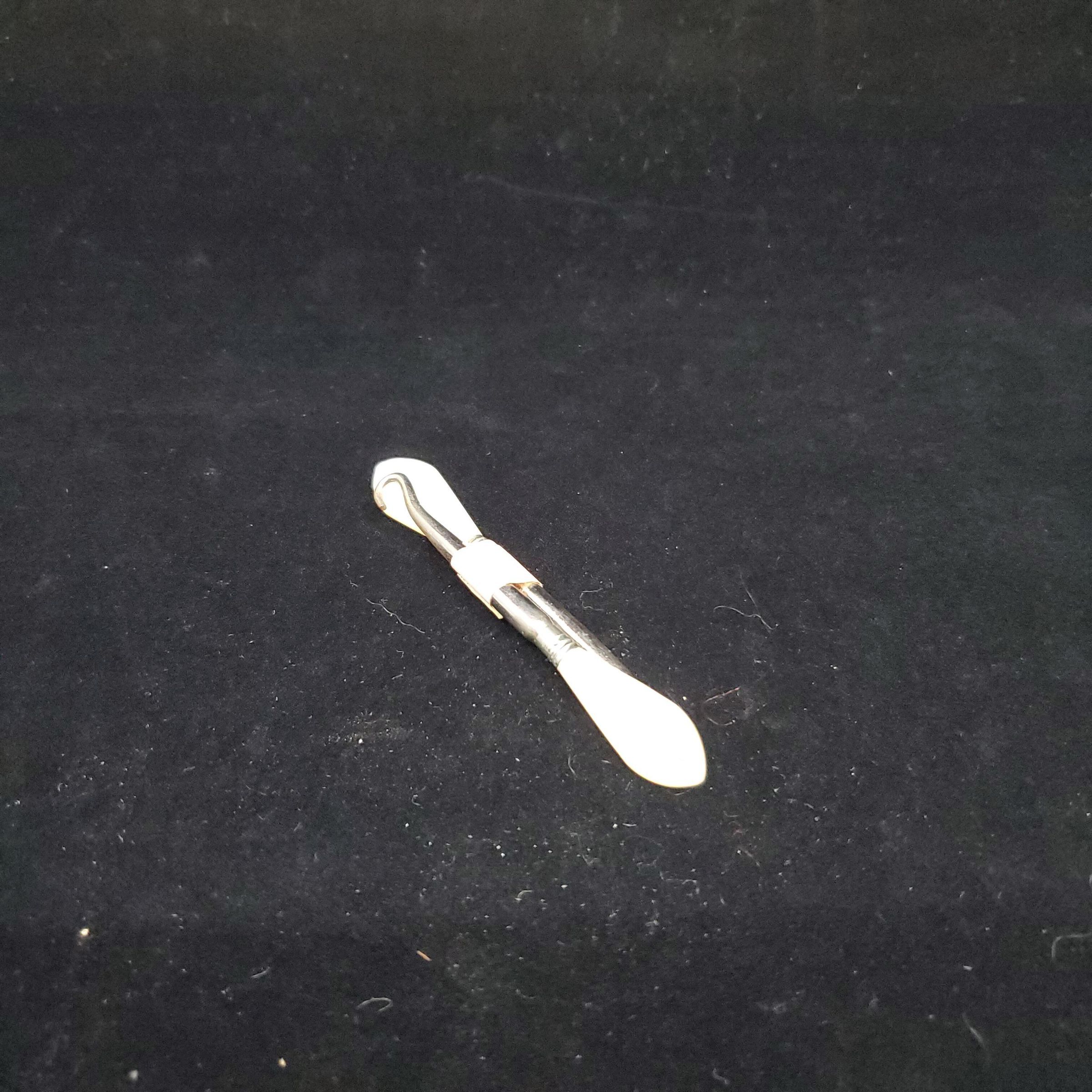 Mother of Pearl handles stiletto or punch and button hook. Stiletto has steel point. Button hook has stee.l hook. Handles of both are very plain MOP - no design.