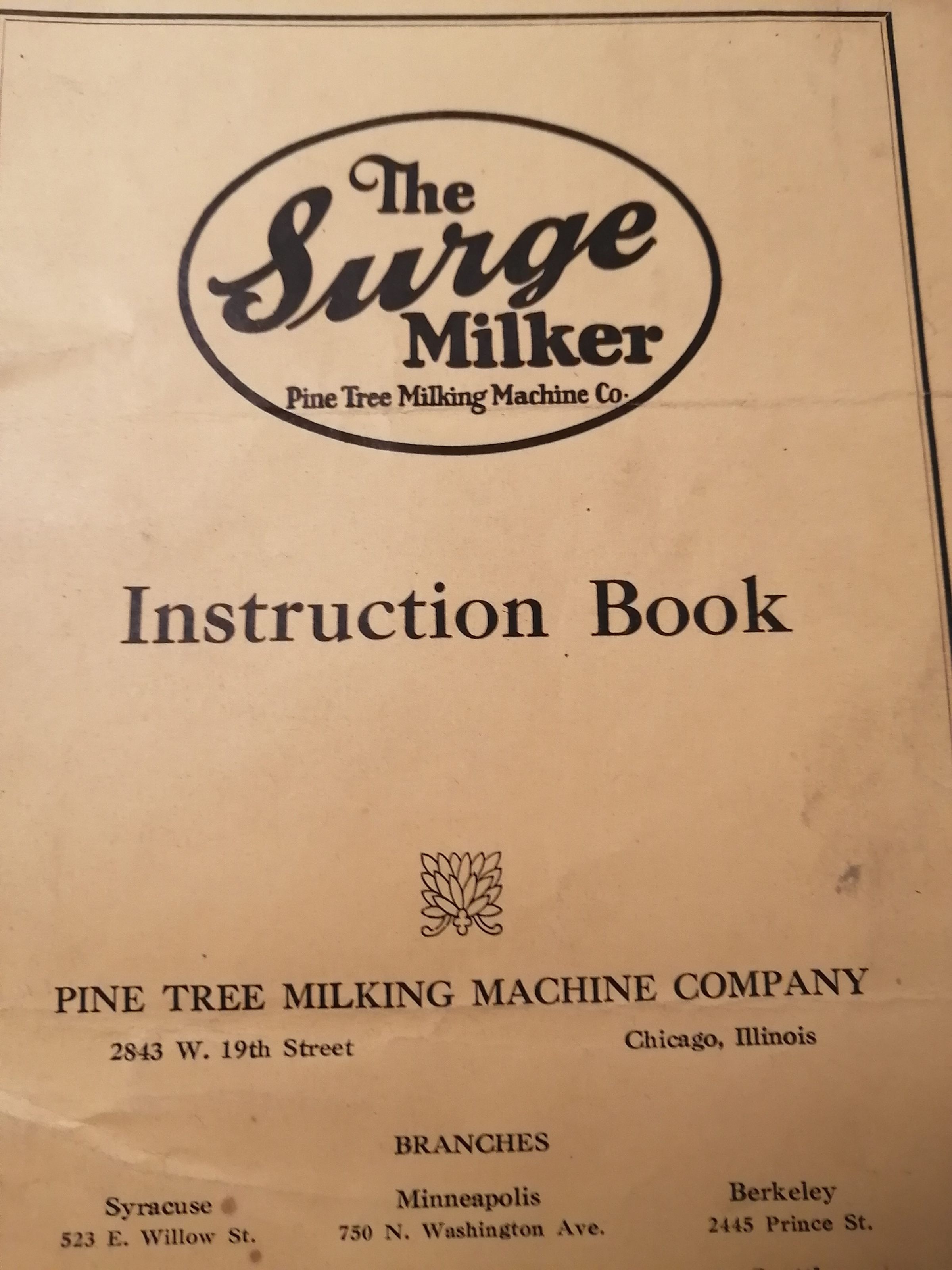 Surge milker. Instruction book