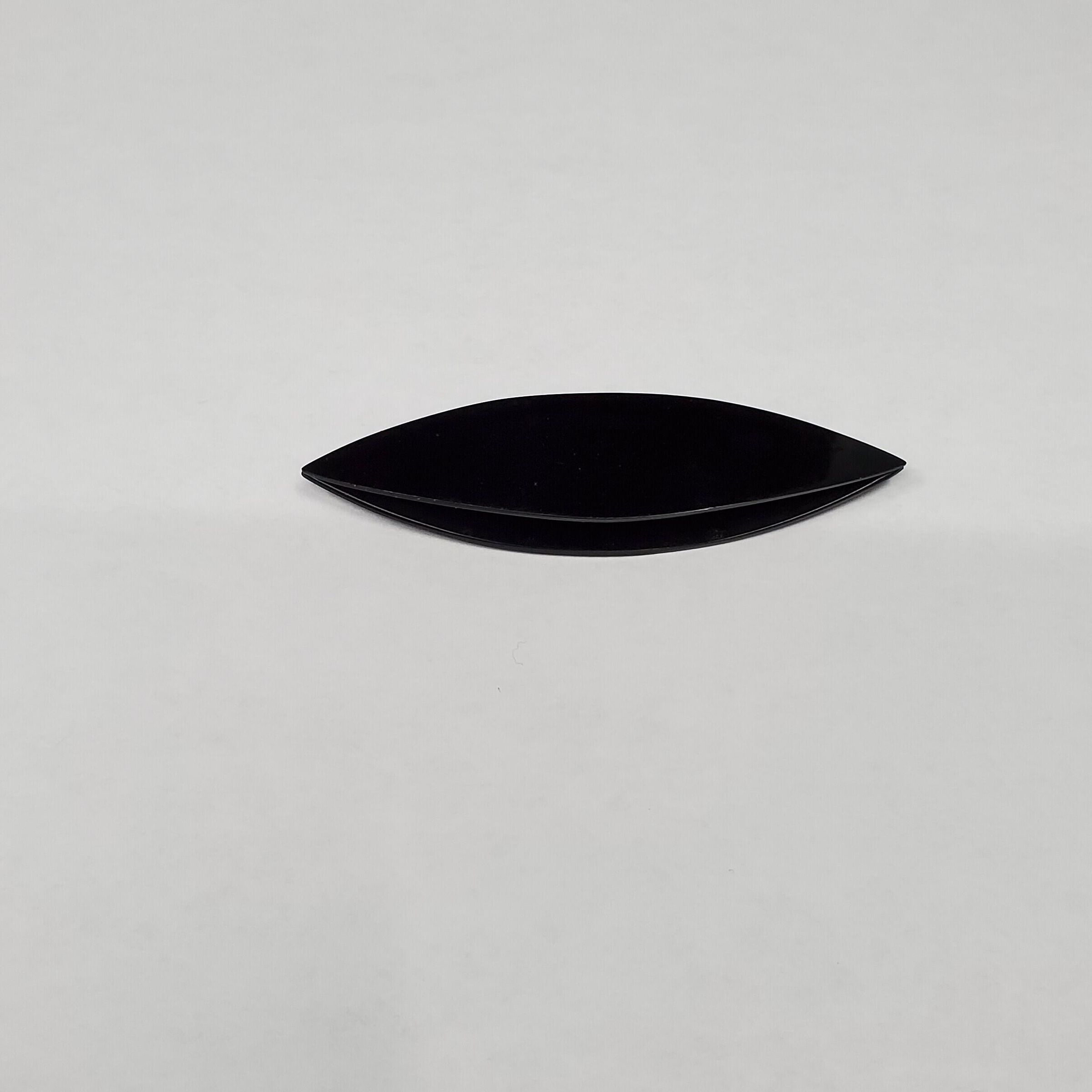 Black plastic tatting shuttle. Center post intact. Tips touching.