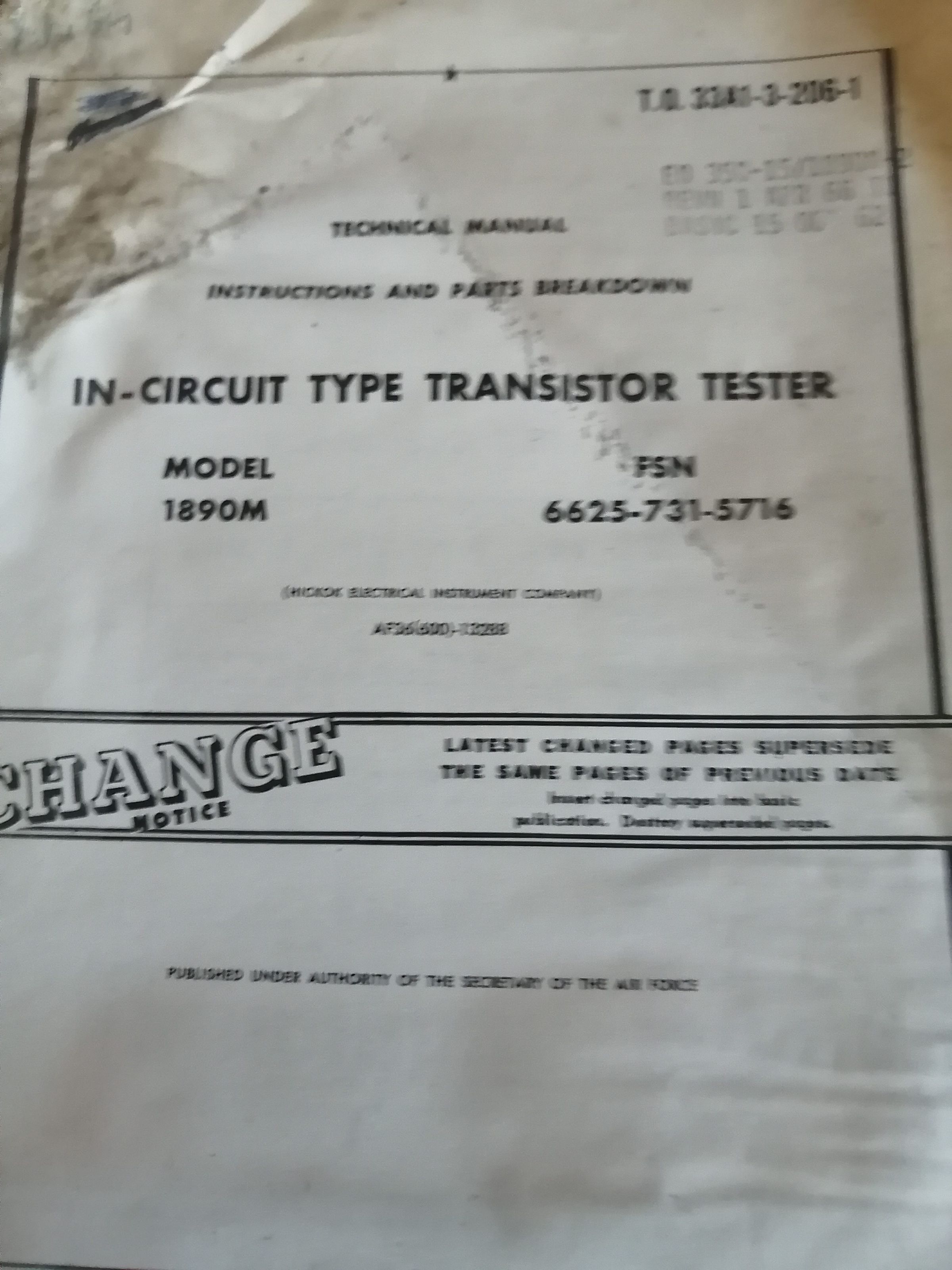 Technical manual. Instructions and parts breakdown. In-circuit transistor tester. Model 1890