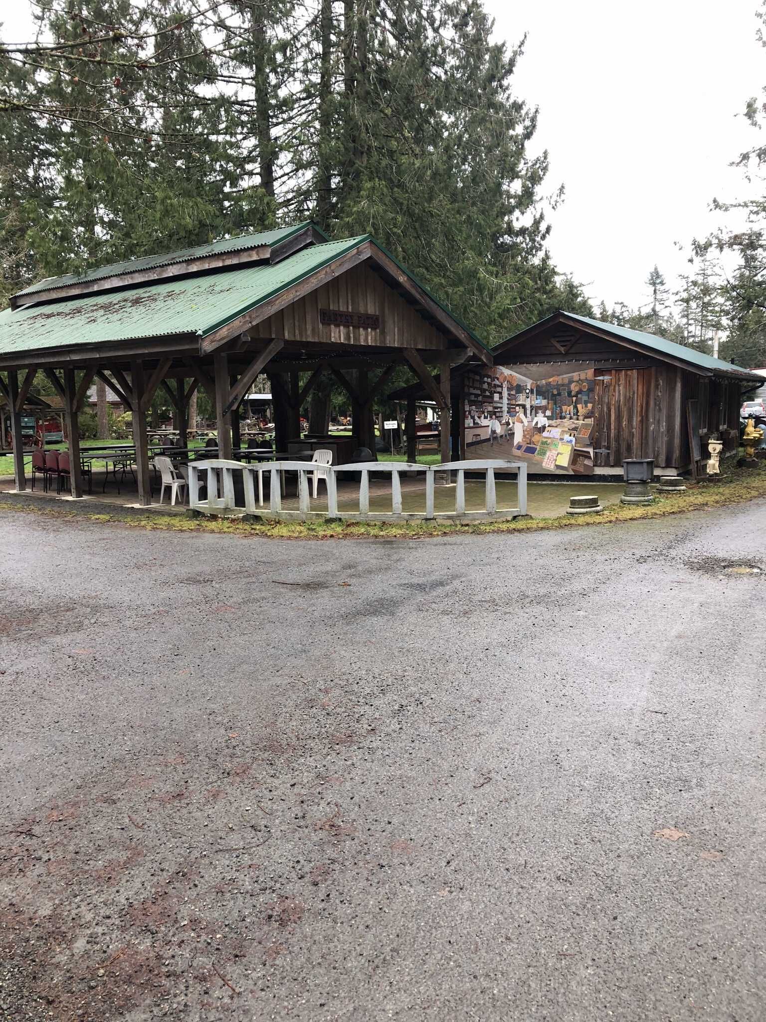 This wooden building received a new metal roof in 1990. The size is 16' X 12' X 7' rear wall.The roof is single pitch on a portsble frame structure. The building was constructed by SHAS volunteers. It is used to serve cooked food items at our Summer Fair and Fall Threshing Show, and is used by the Society and visitors for other events during the year.
